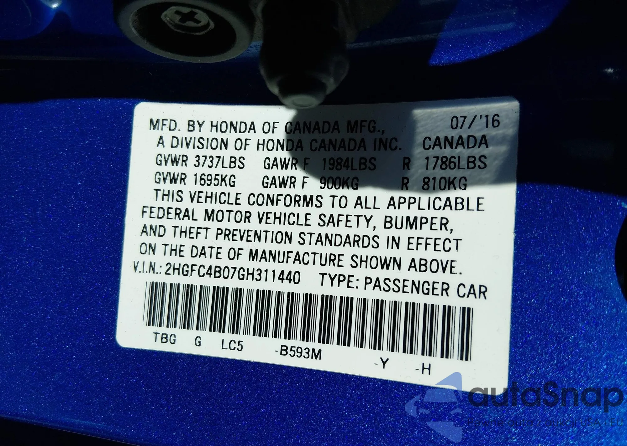 VIN: 2HGFC4B07GH311440