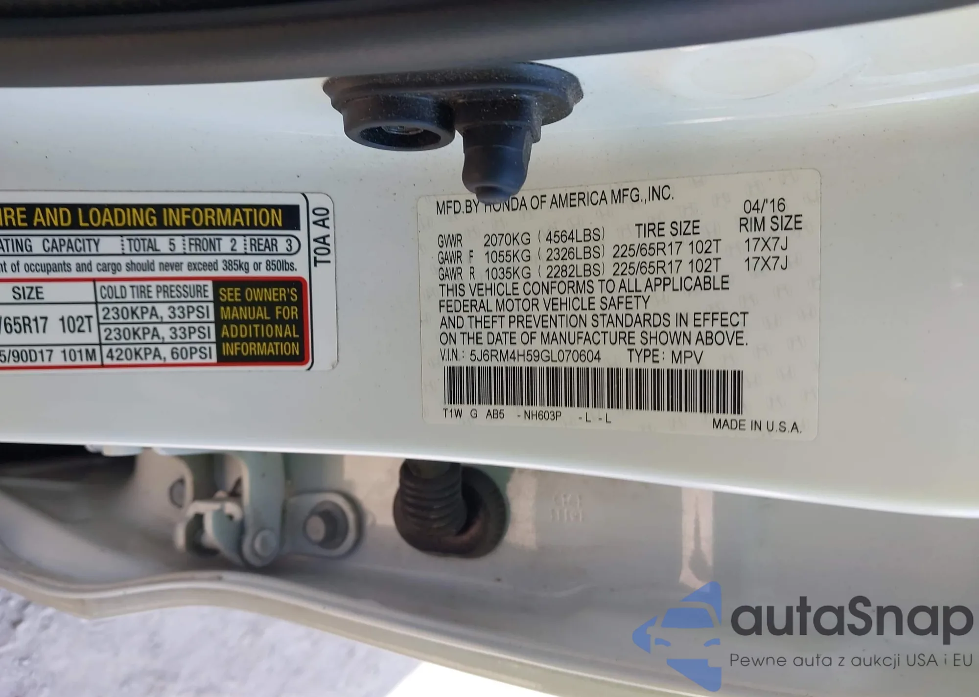 VIN: 5J6RM4H59GL070604