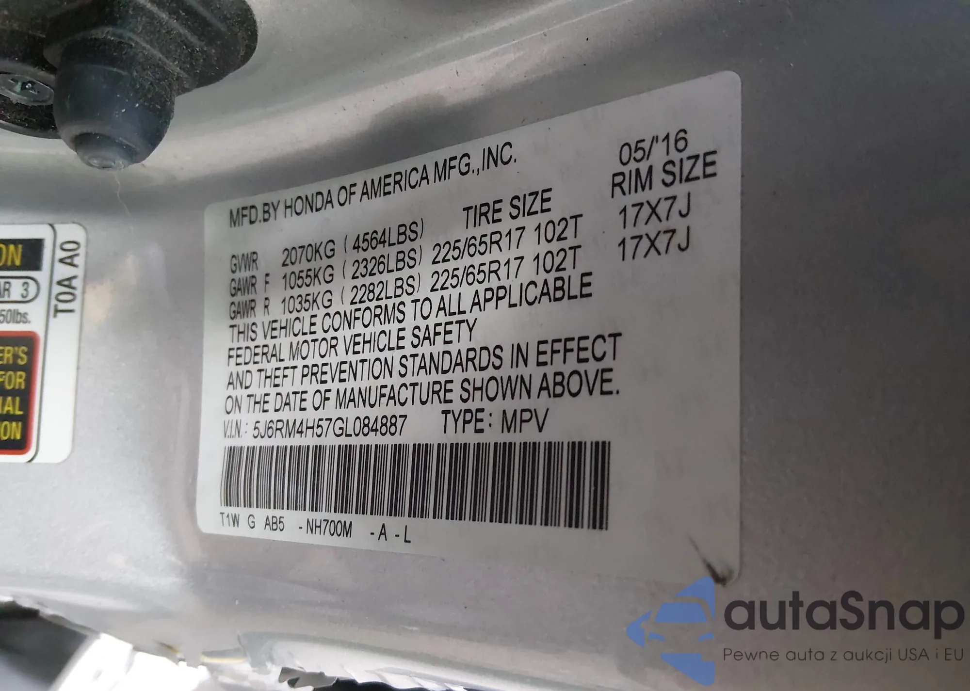 VIN: 5J6RM4H57GL084887