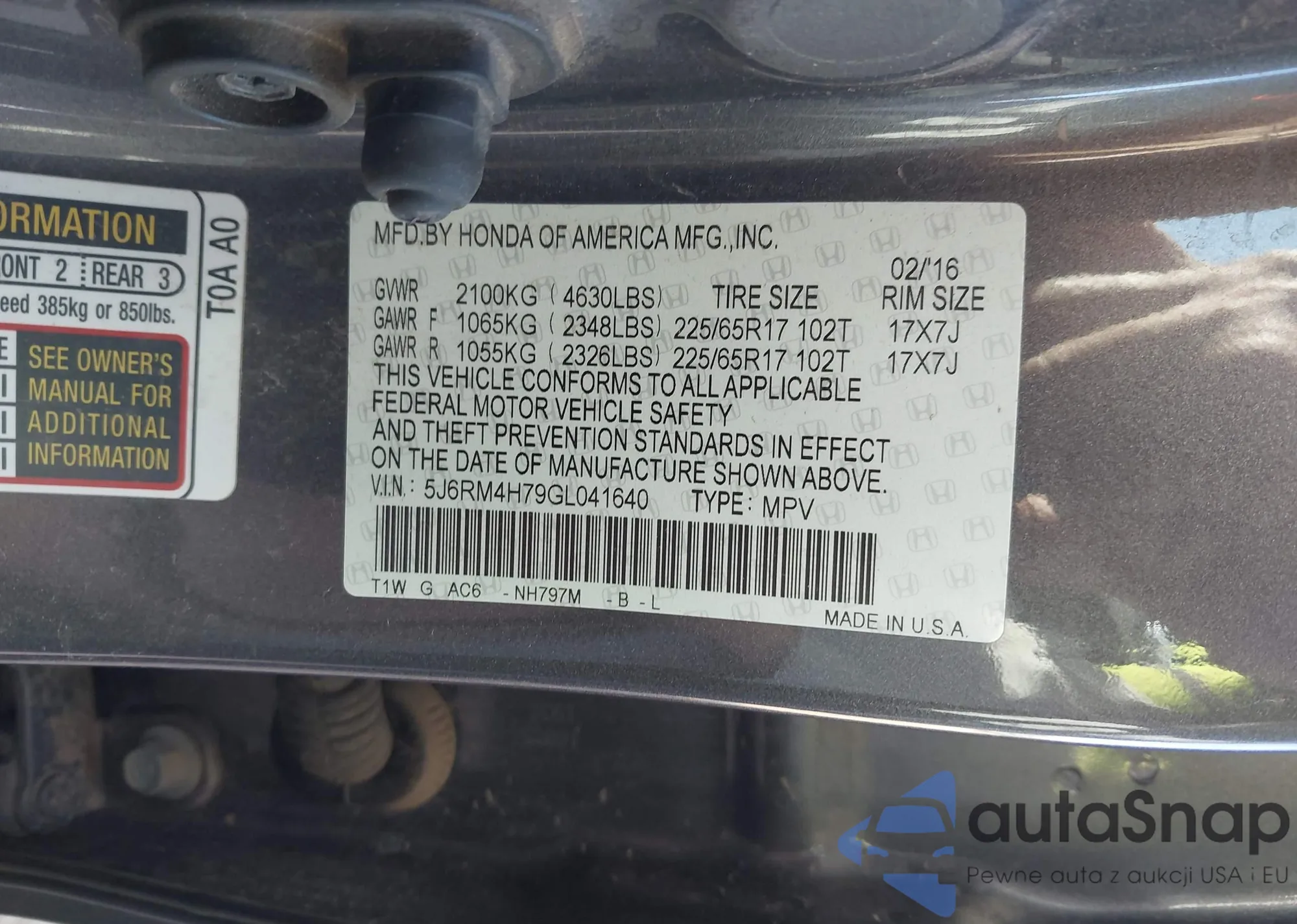 VIN: 5J6RM4H79GL041640