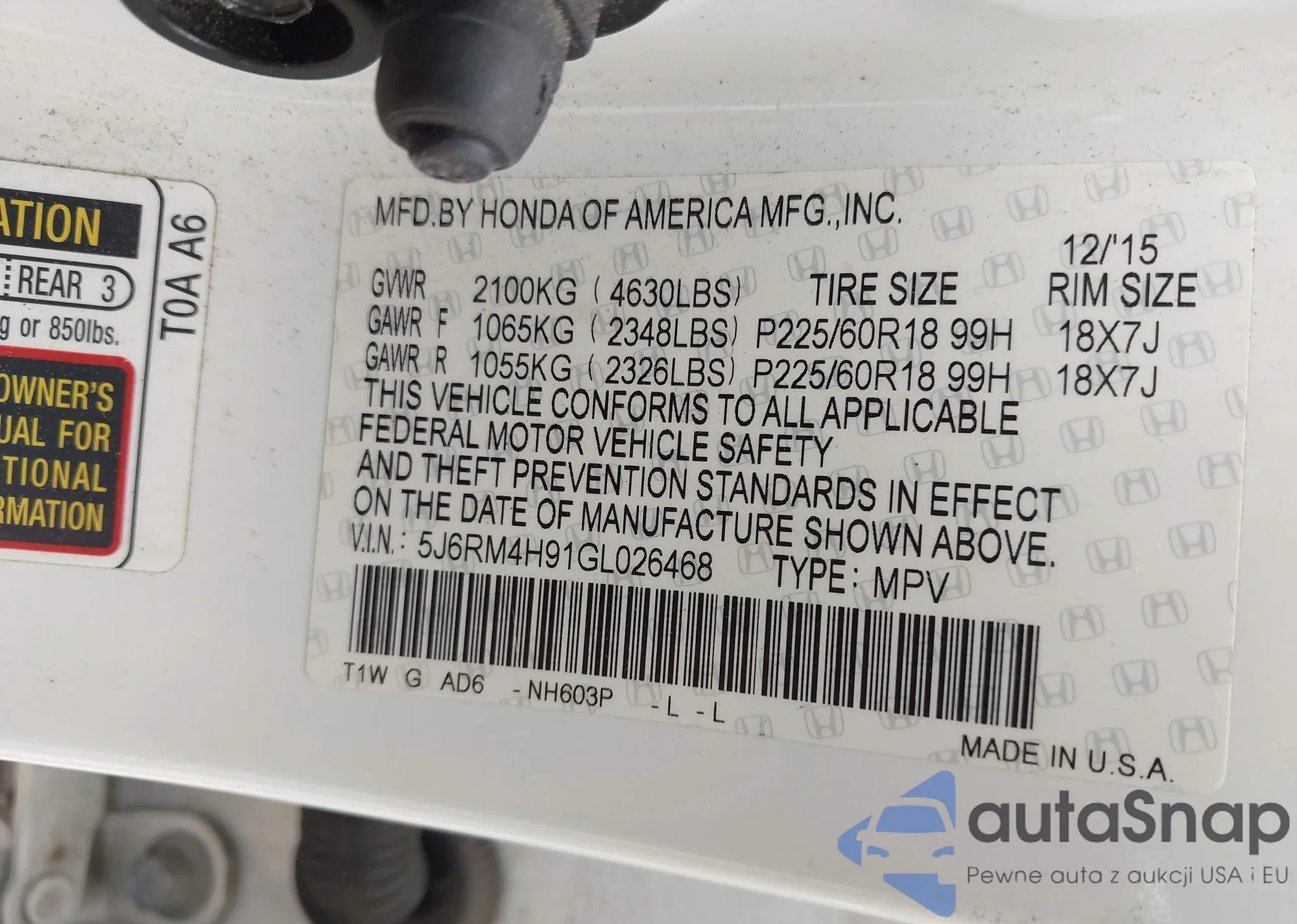 VIN: 5J6RM4H91GL026468