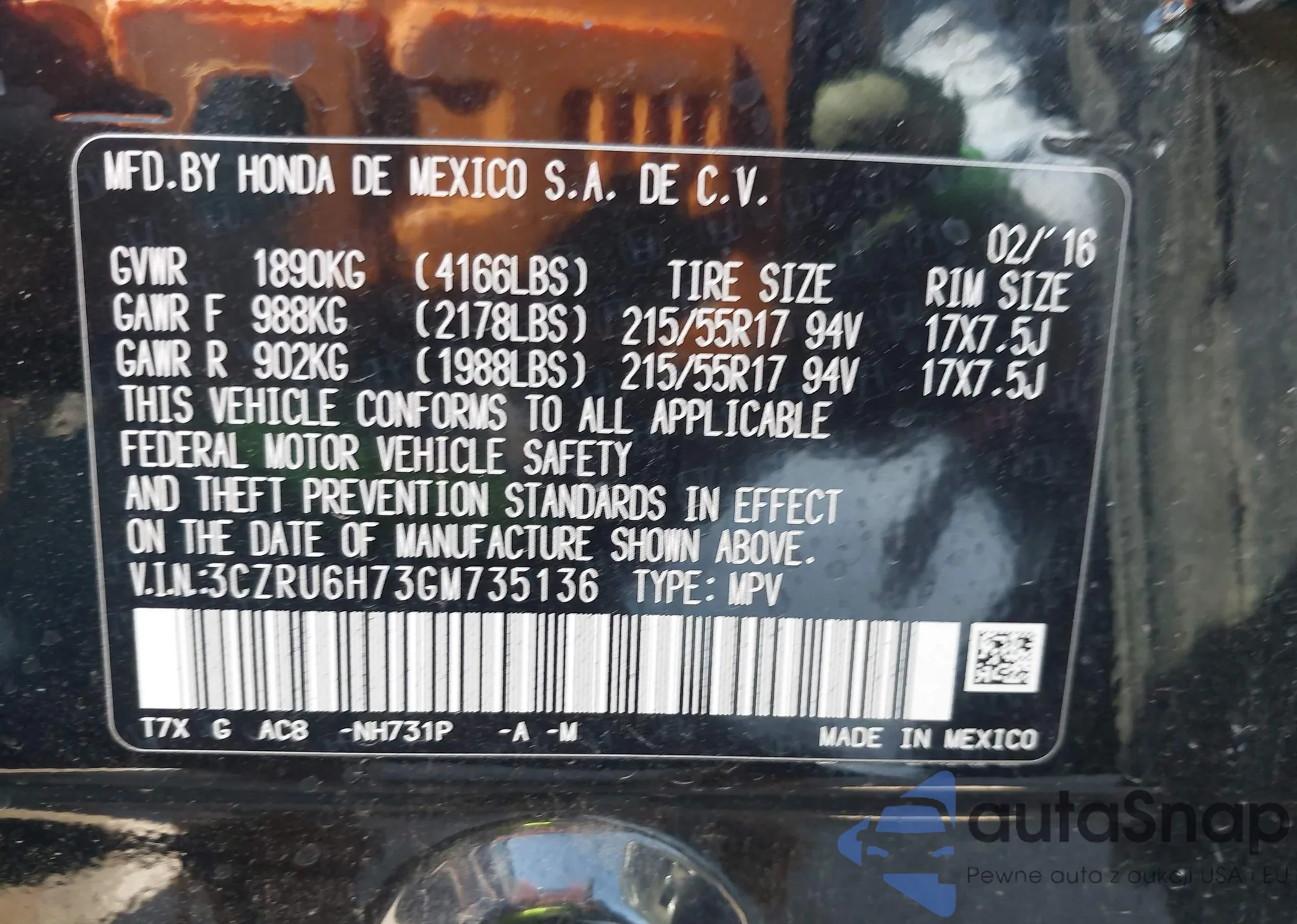 VIN: 3CZRU6H73GM735136