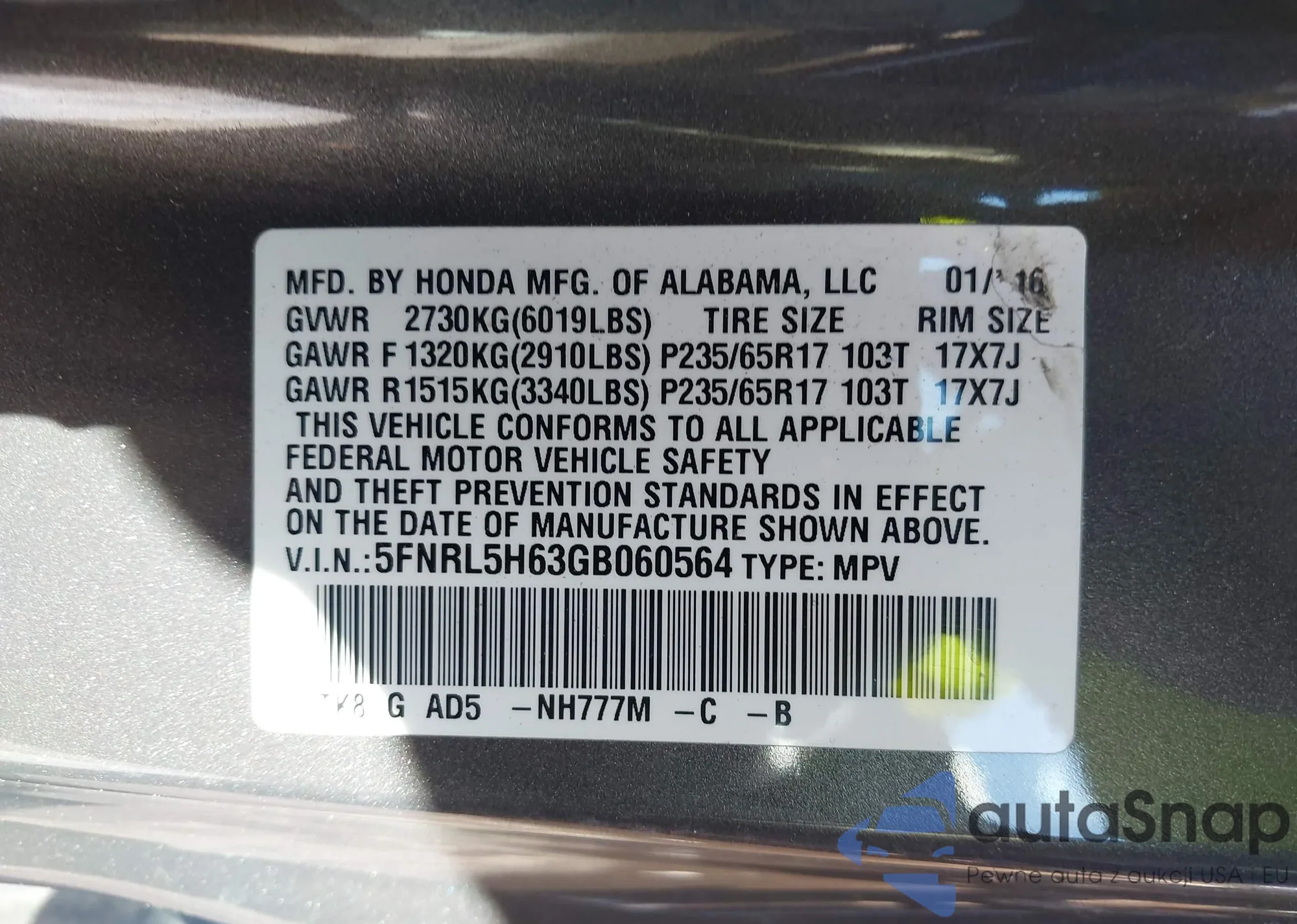 VIN: 5FNRL5H63GB060564