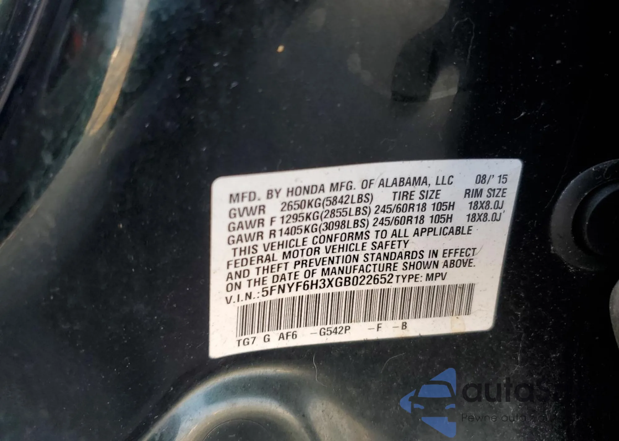 VIN: 5FNYF6H3XGB022652