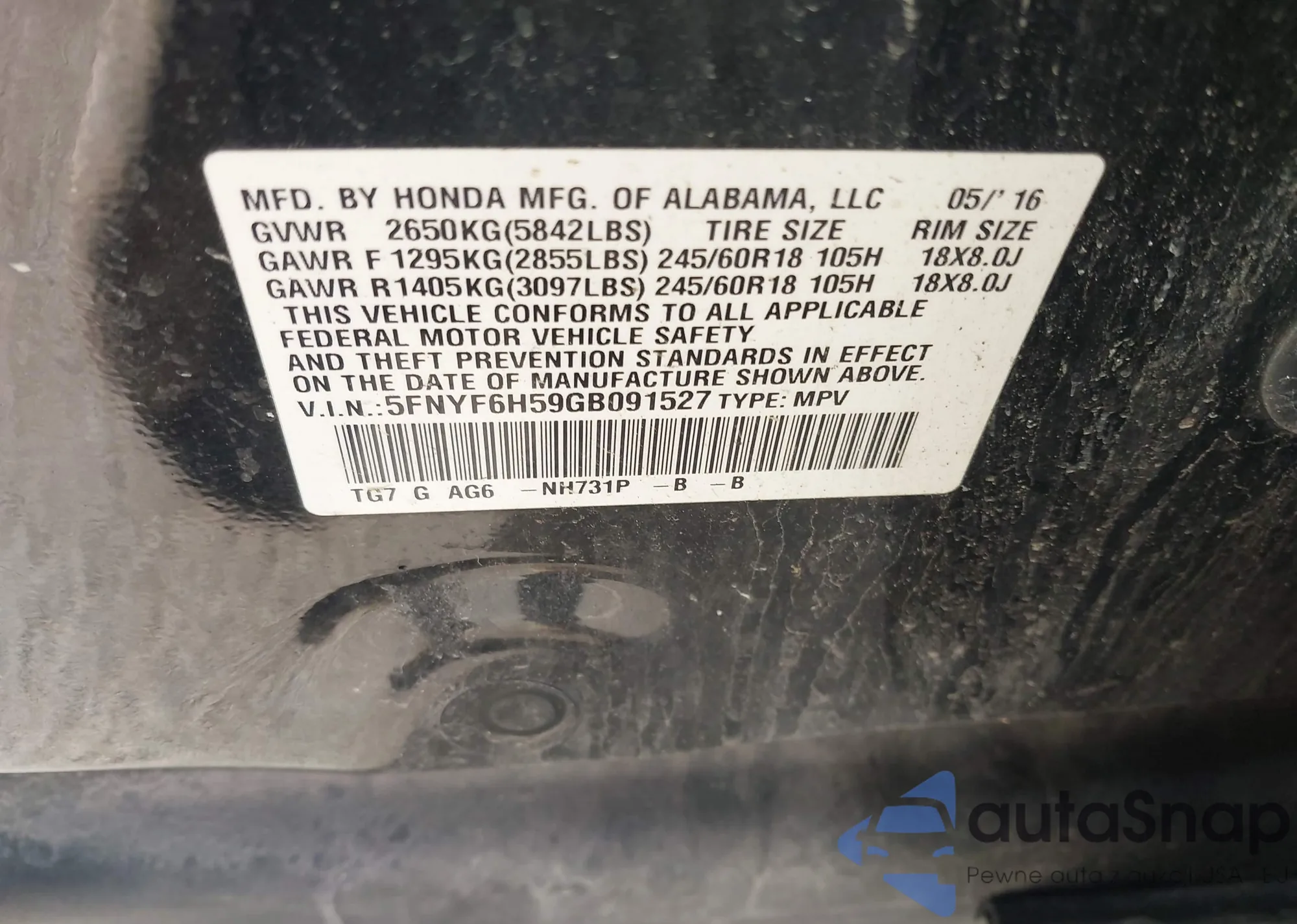 VIN: 5FNYF6H59GB091527
