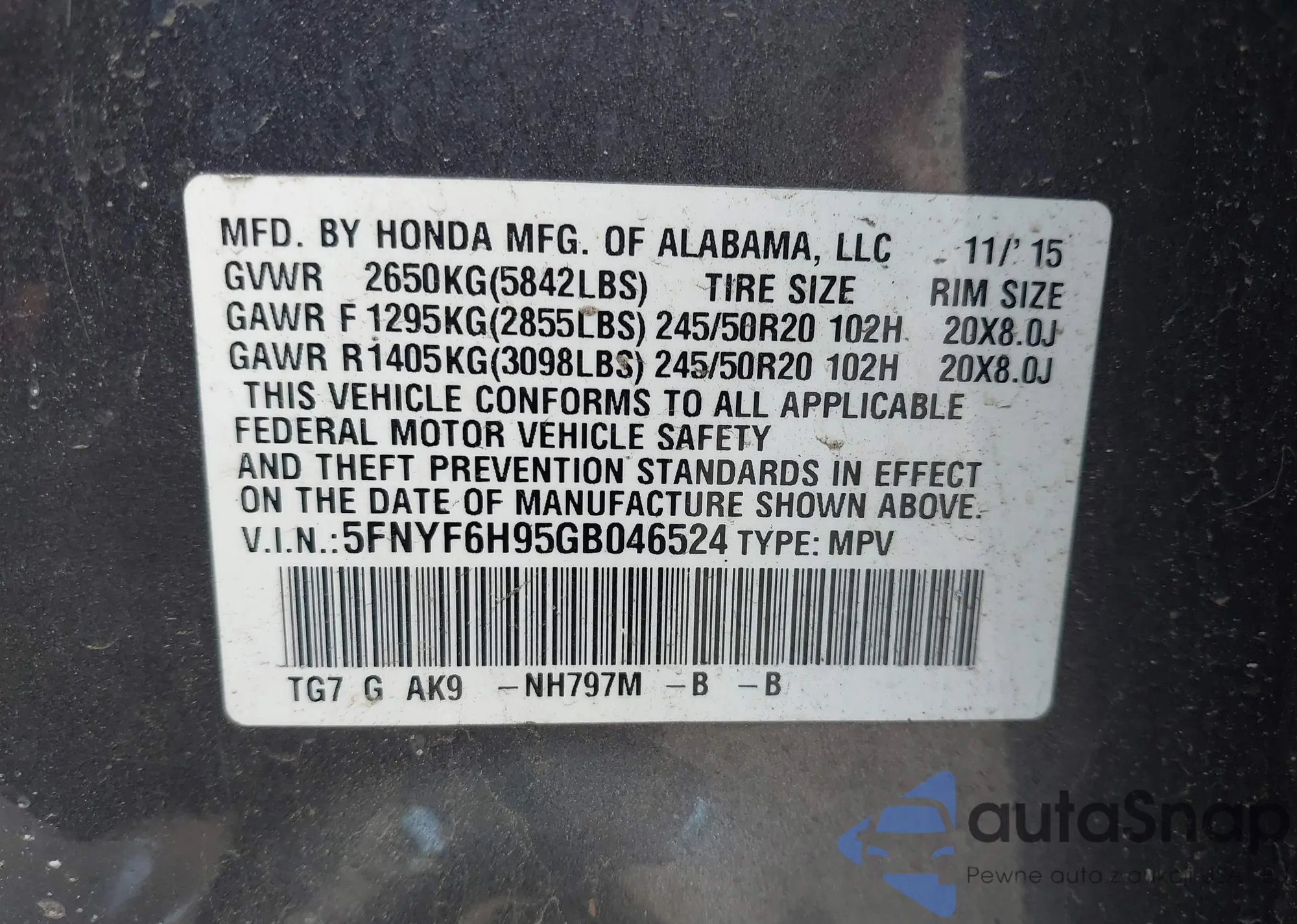 VIN: 5FNYF6H95GB046524
