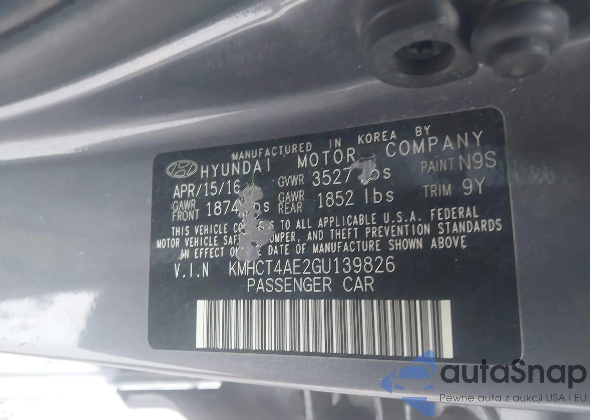 VIN: KMHCT4AE2GU139826