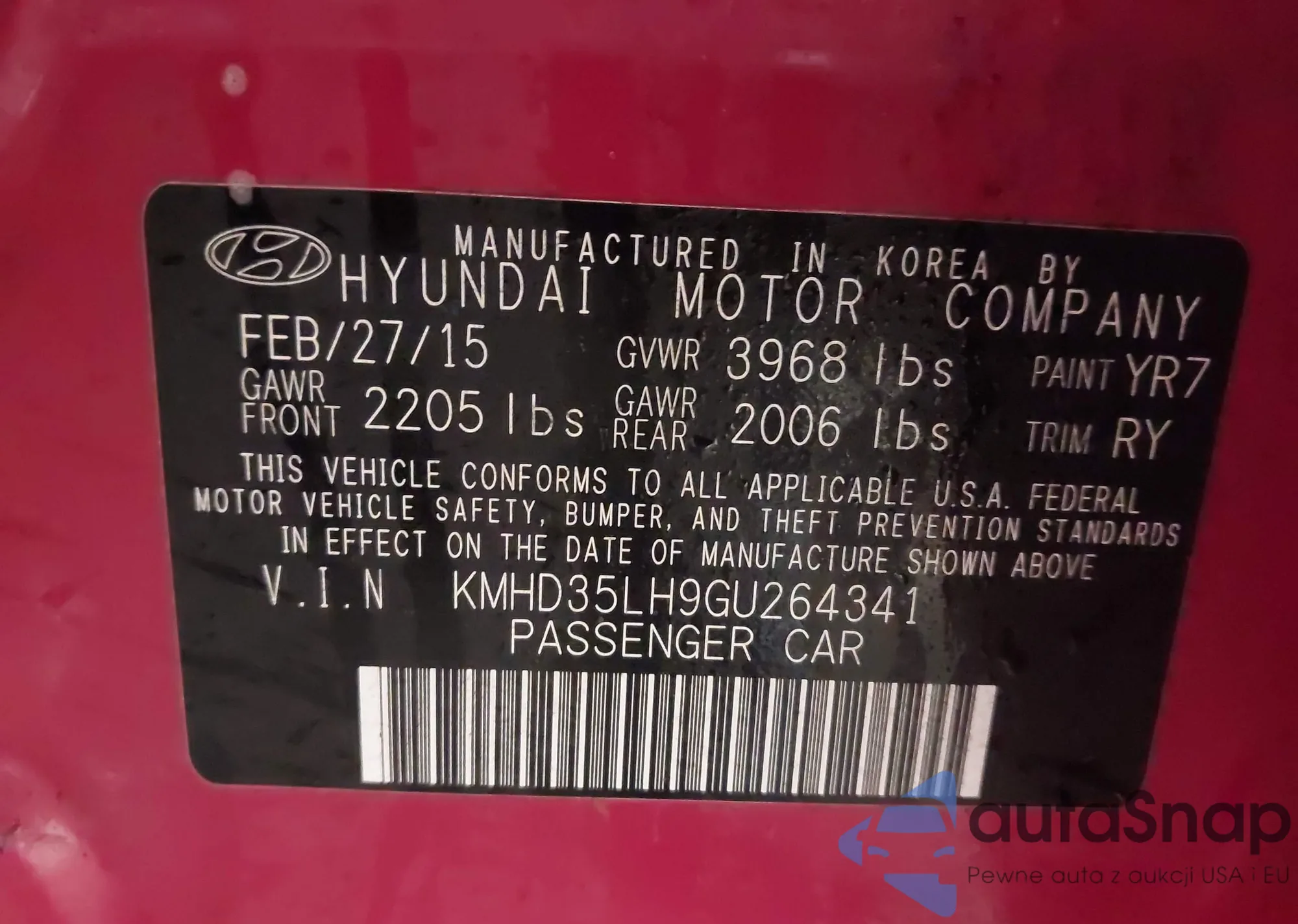 Автомобиль Hyundai Elantra 2016 (VIN KMHD35LH9GU264341) ранее не участвовал в торгах. Документы чистые, пробег соответствует или ниже среднего по рынку. Продаётся страховой компанией — рекомендуем покупку. Доставка в порт займет около 6–8 недель.
