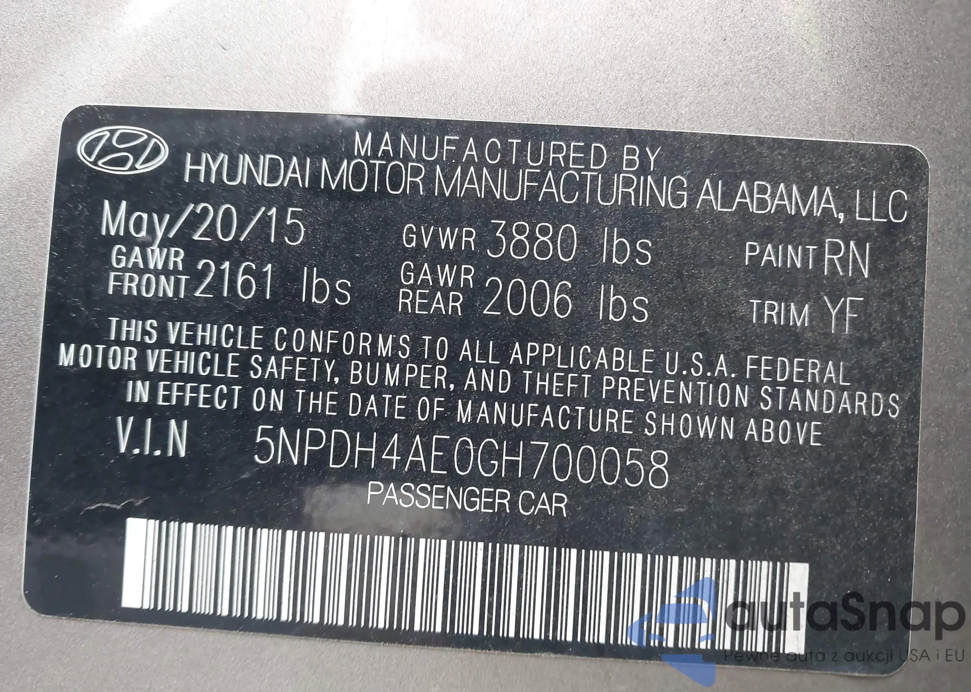 VIN: 5NPDH4AE0GH700058