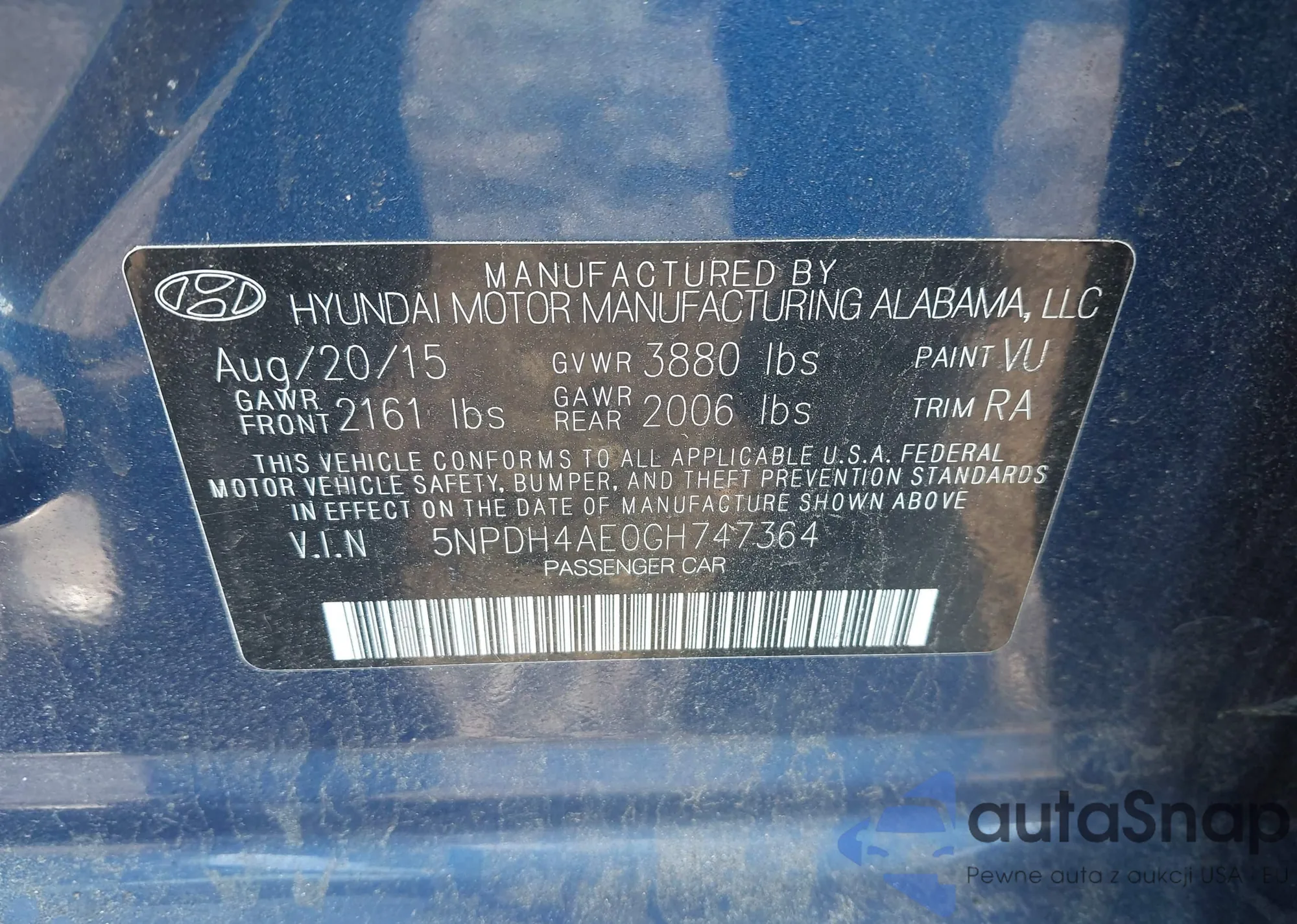 VIN: 5NPDH4AE0GH747364