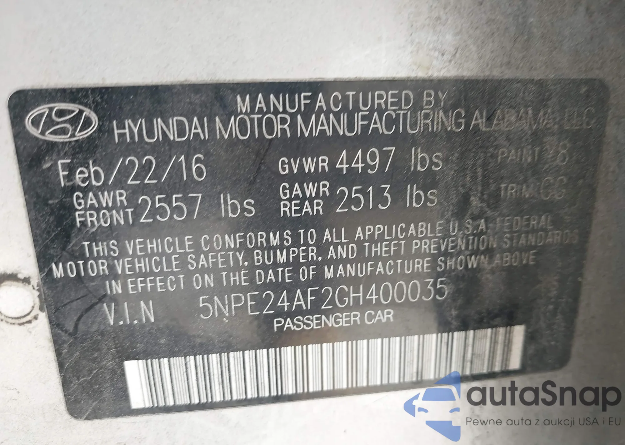 VIN: 5NPE24AF2GH400035