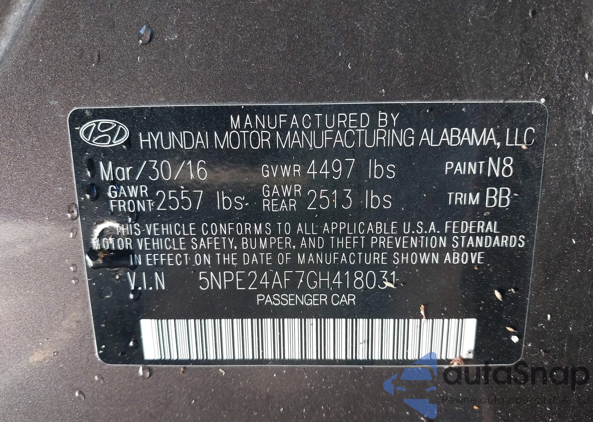 VIN: 5NPE24AF7GH418031