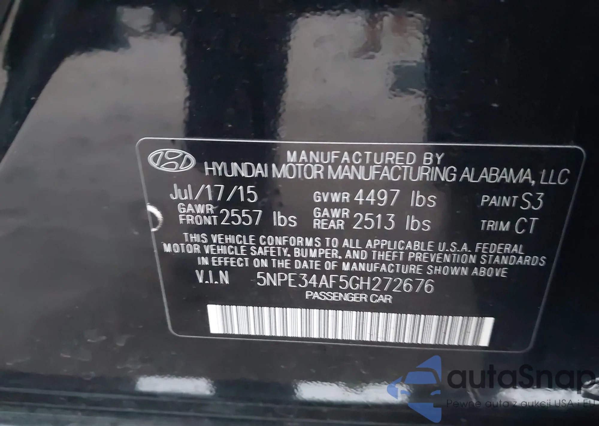 VIN: 5NPE34AF5GH272676