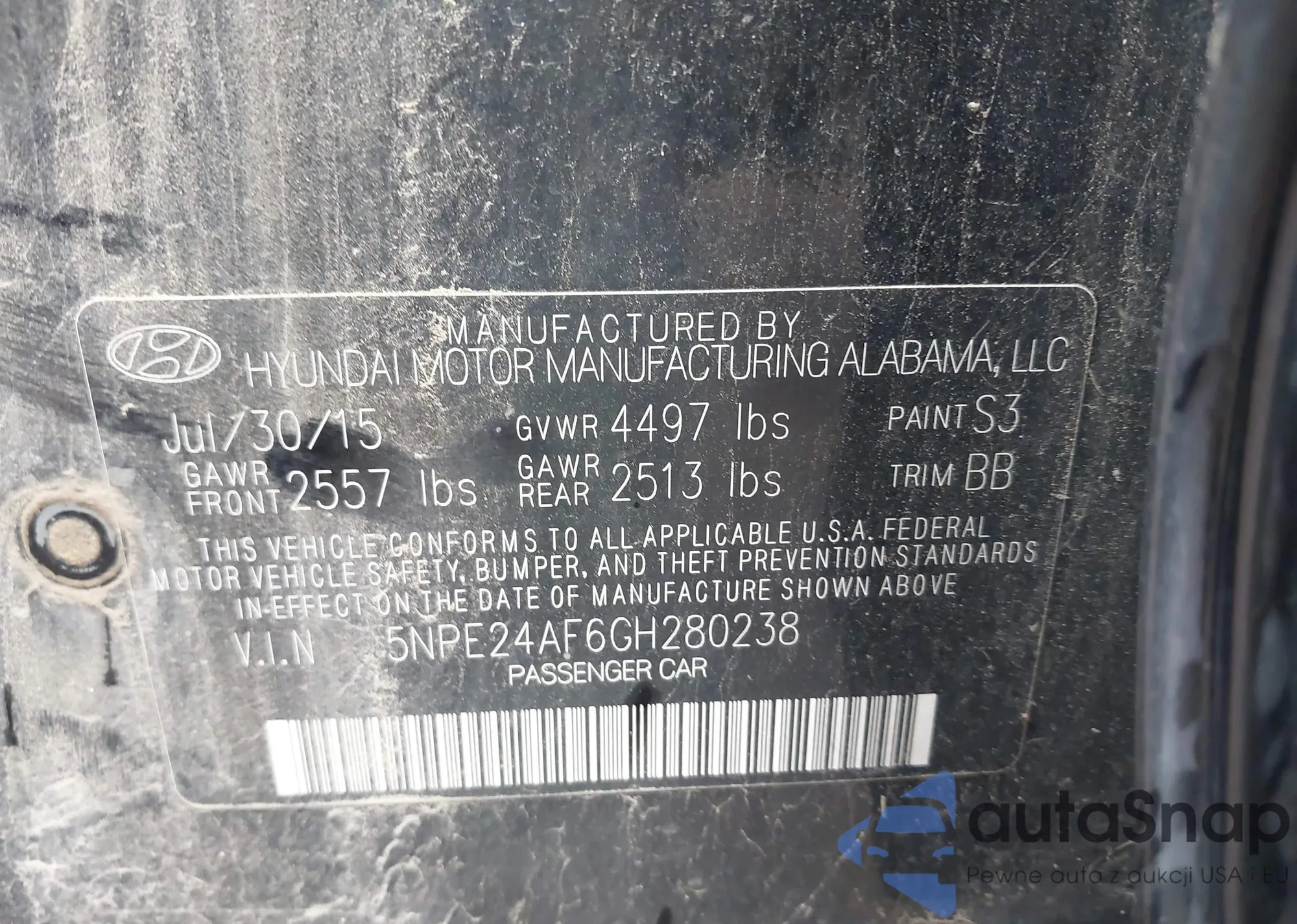 VIN: 5NPE24AF6GH280238