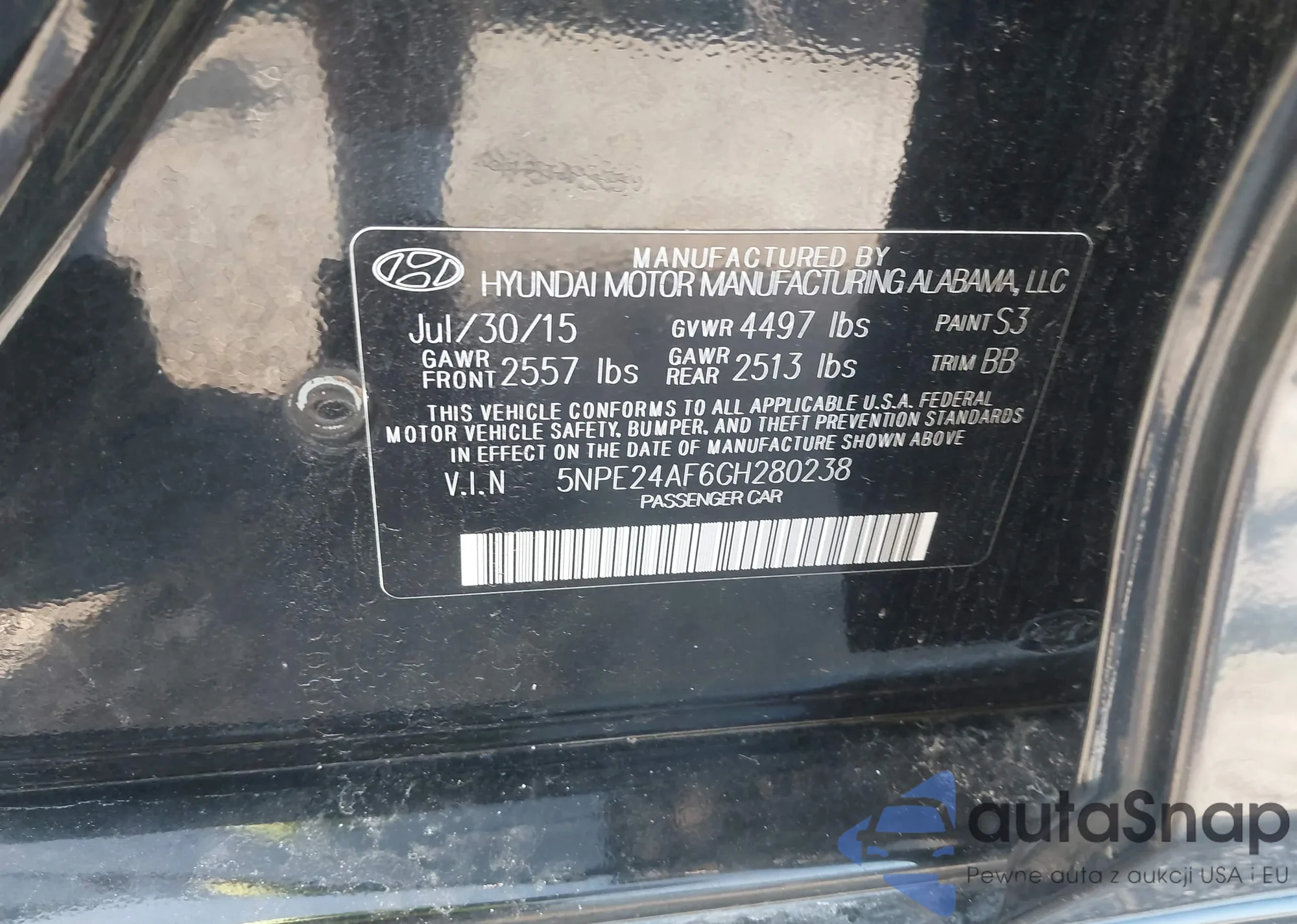 VIN: 5NPE24AF6GH280238