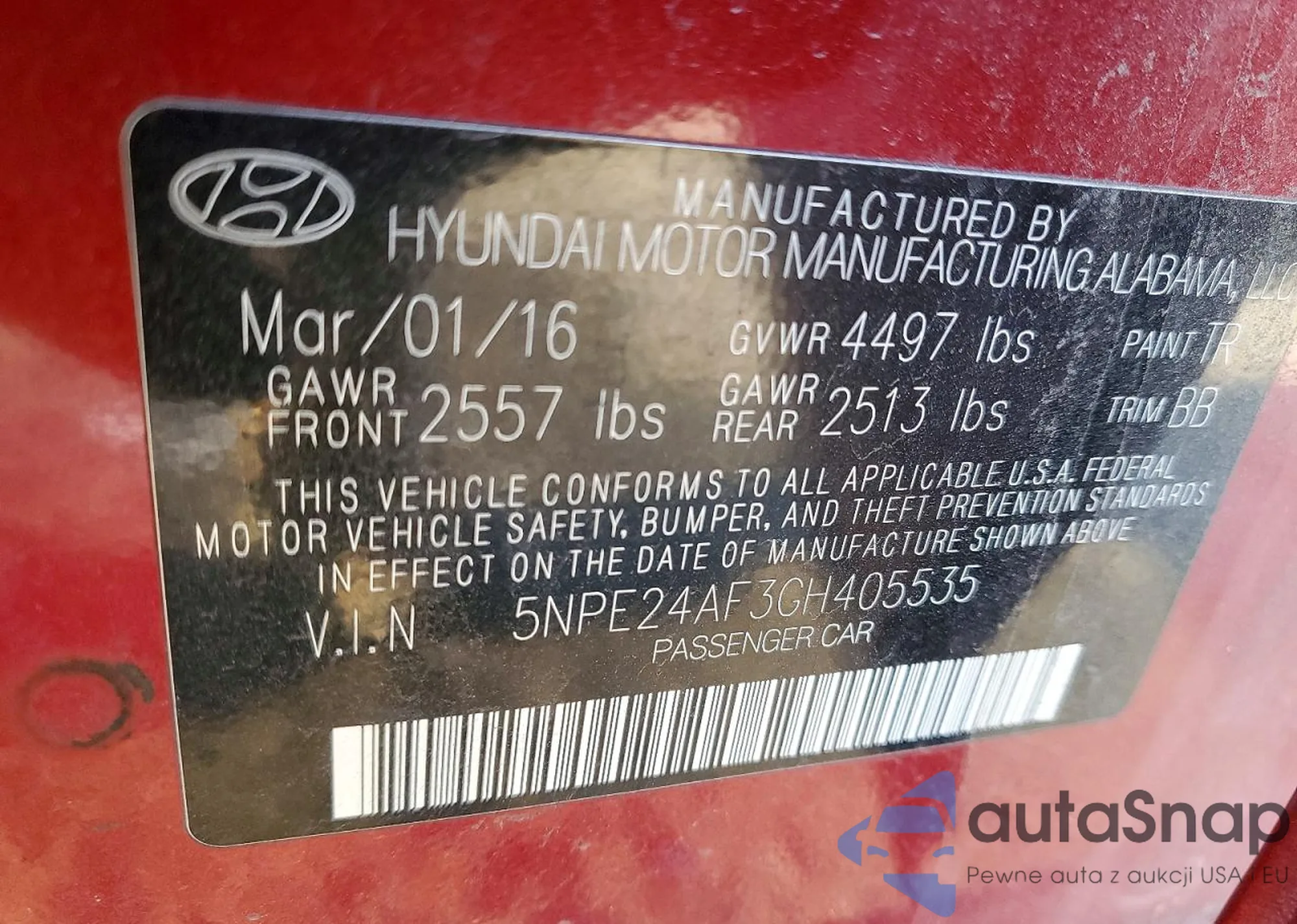 VIN: 5NPE24AF3GH405535