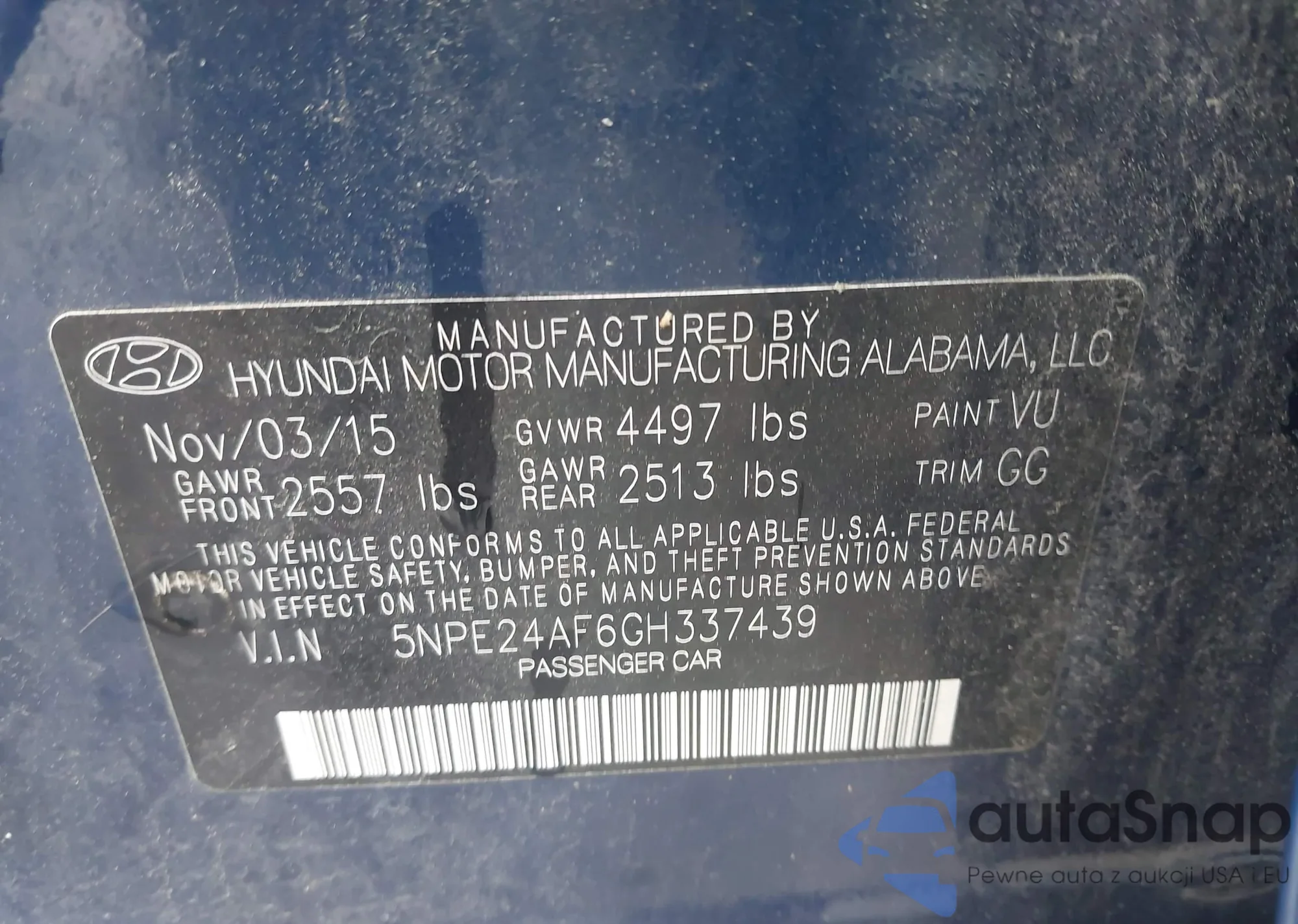 VIN: 5NPE24AF6GH337439