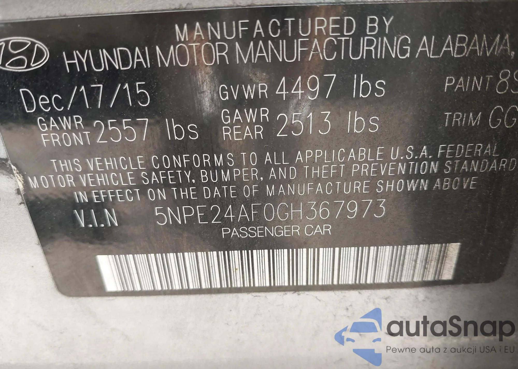 VIN: 5NPE24AF0GH367973