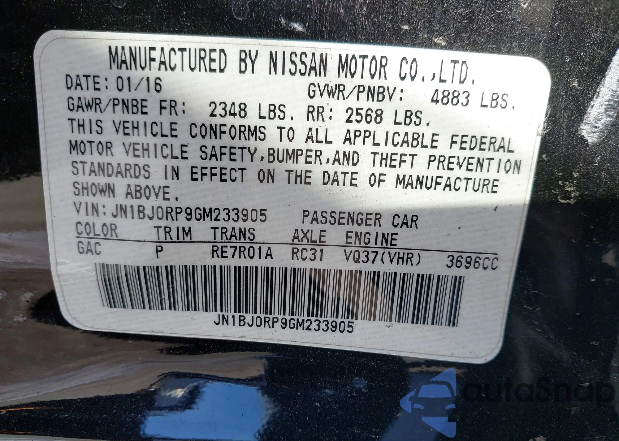 VIN: JN1BJ0RP9GM233905