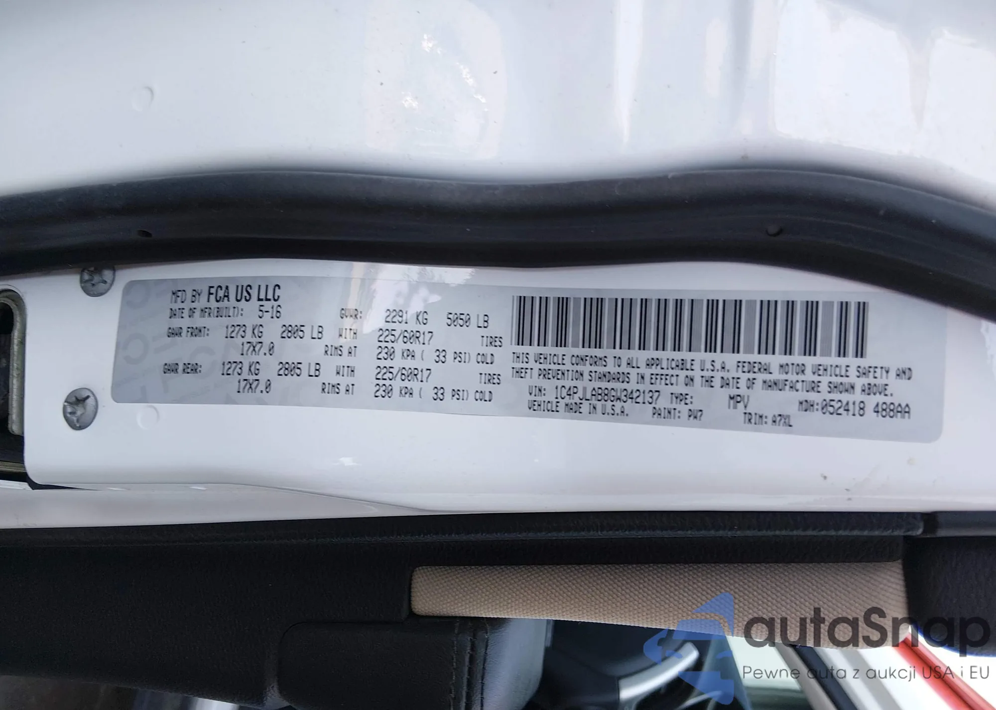 VIN: 1C4PJLAB8GW342137