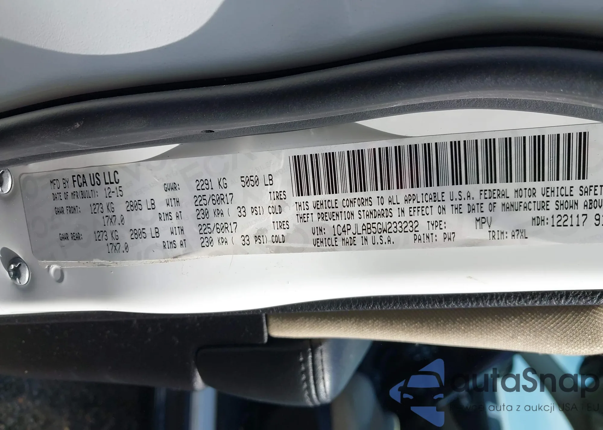 VIN: 1C4PJLAB5GW233232
