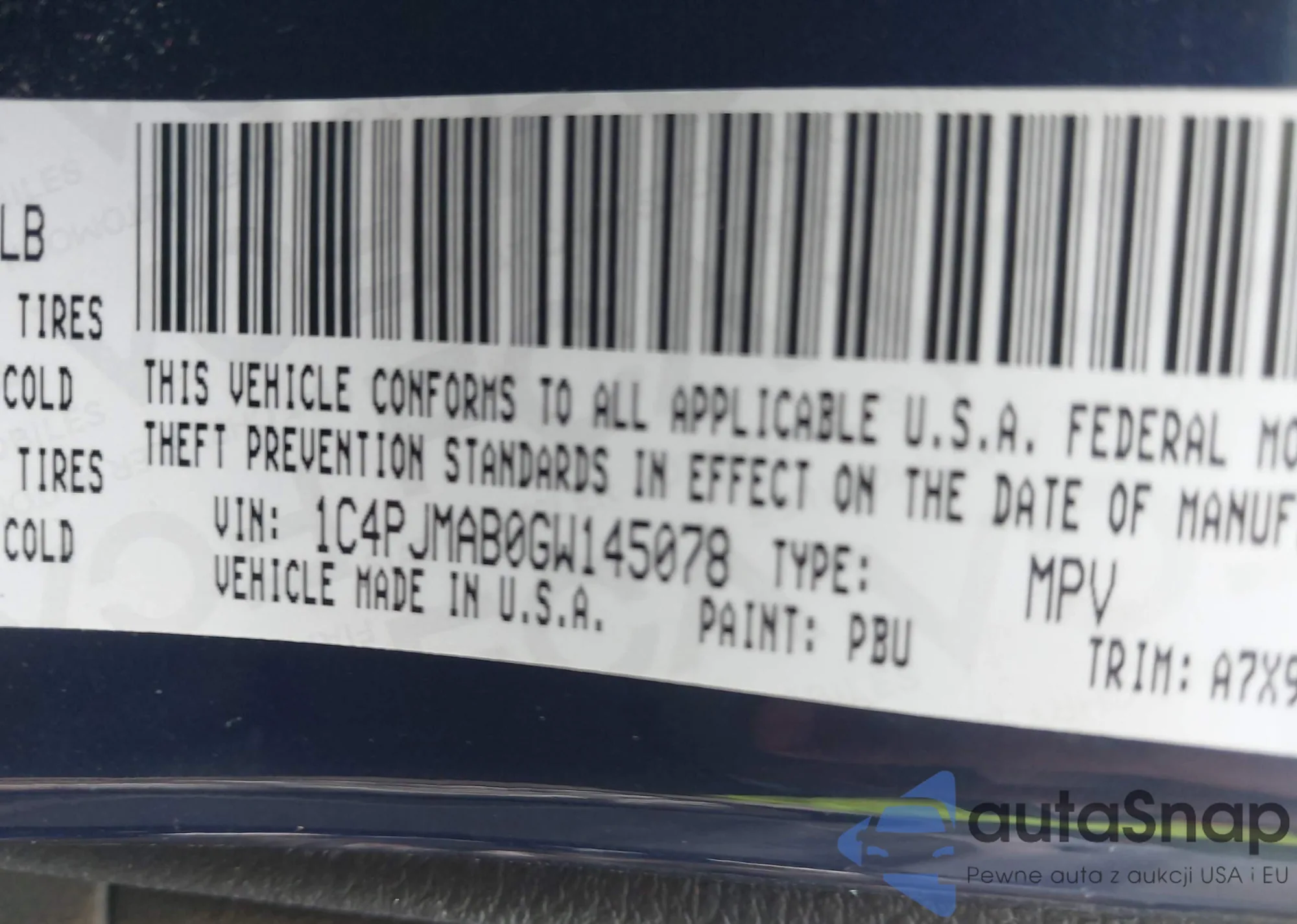 VIN: 1C4PJMAB0GW145078