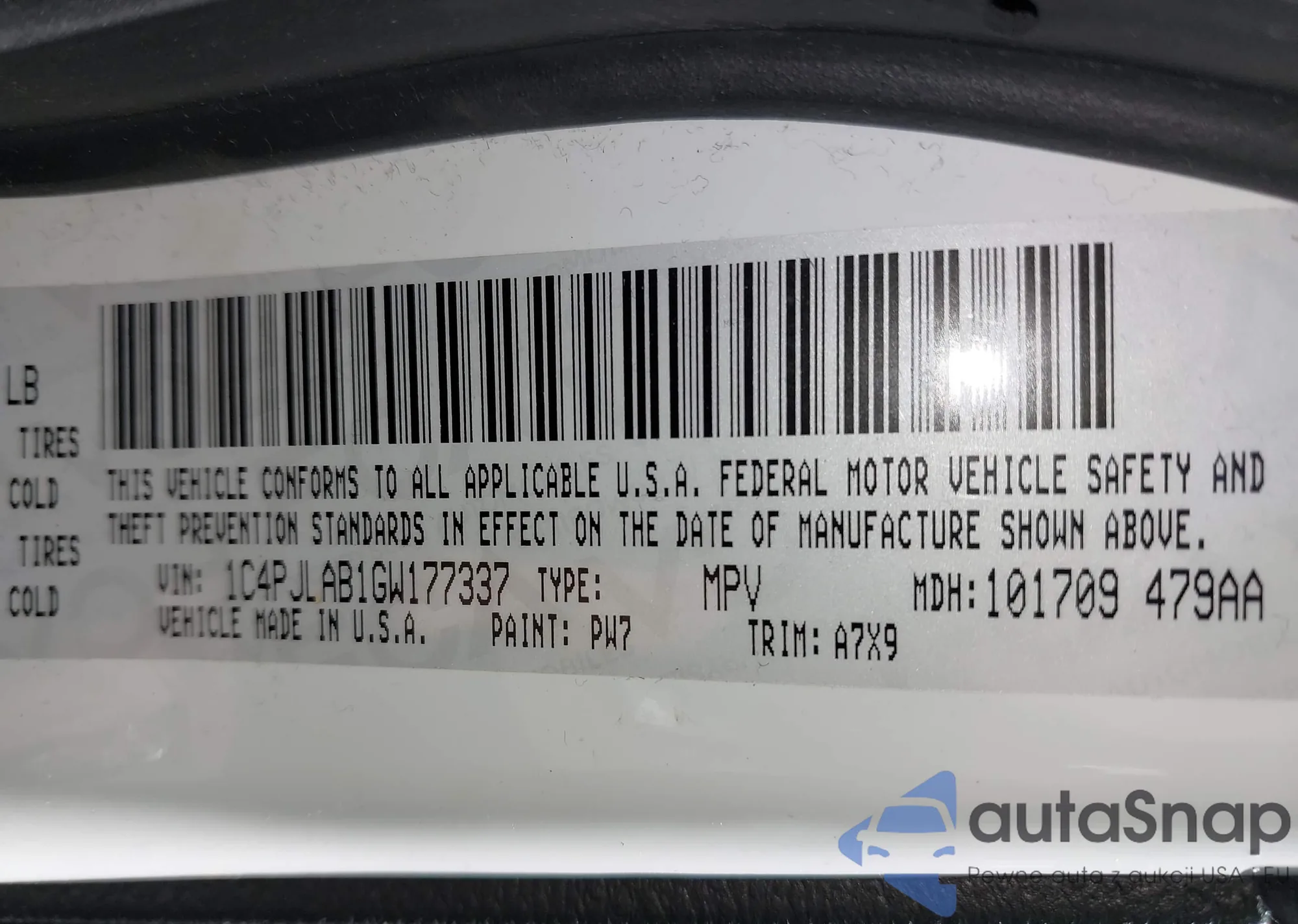 VIN: 1C4PJLAB1GW177337