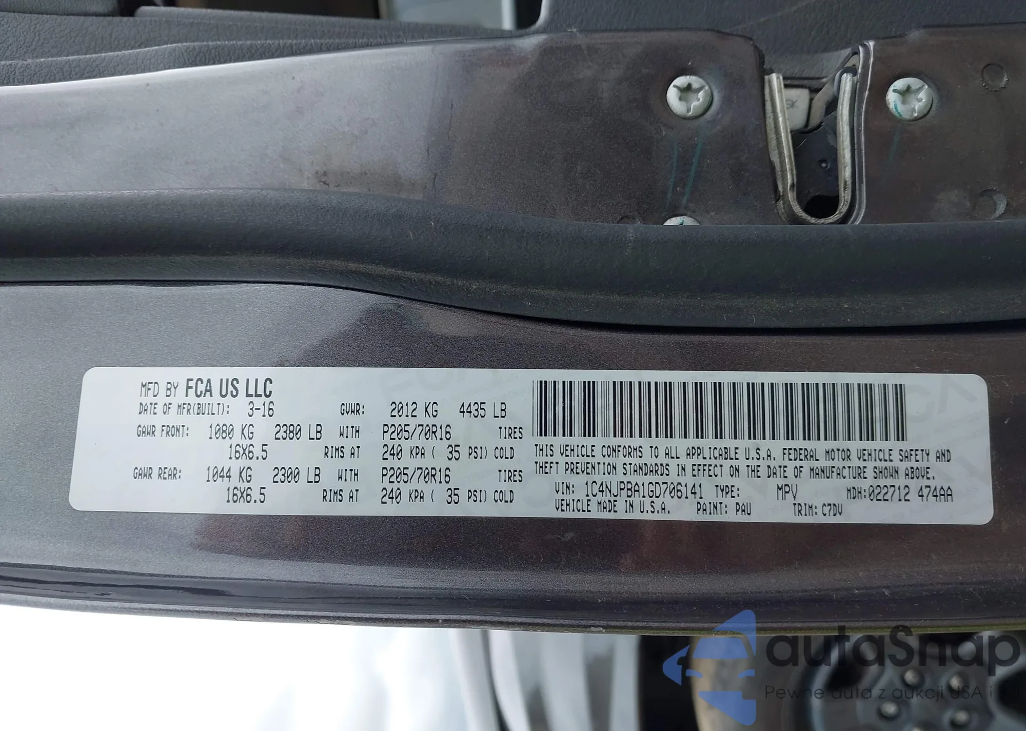 • VIN: 1C4NJPBA1GD706141