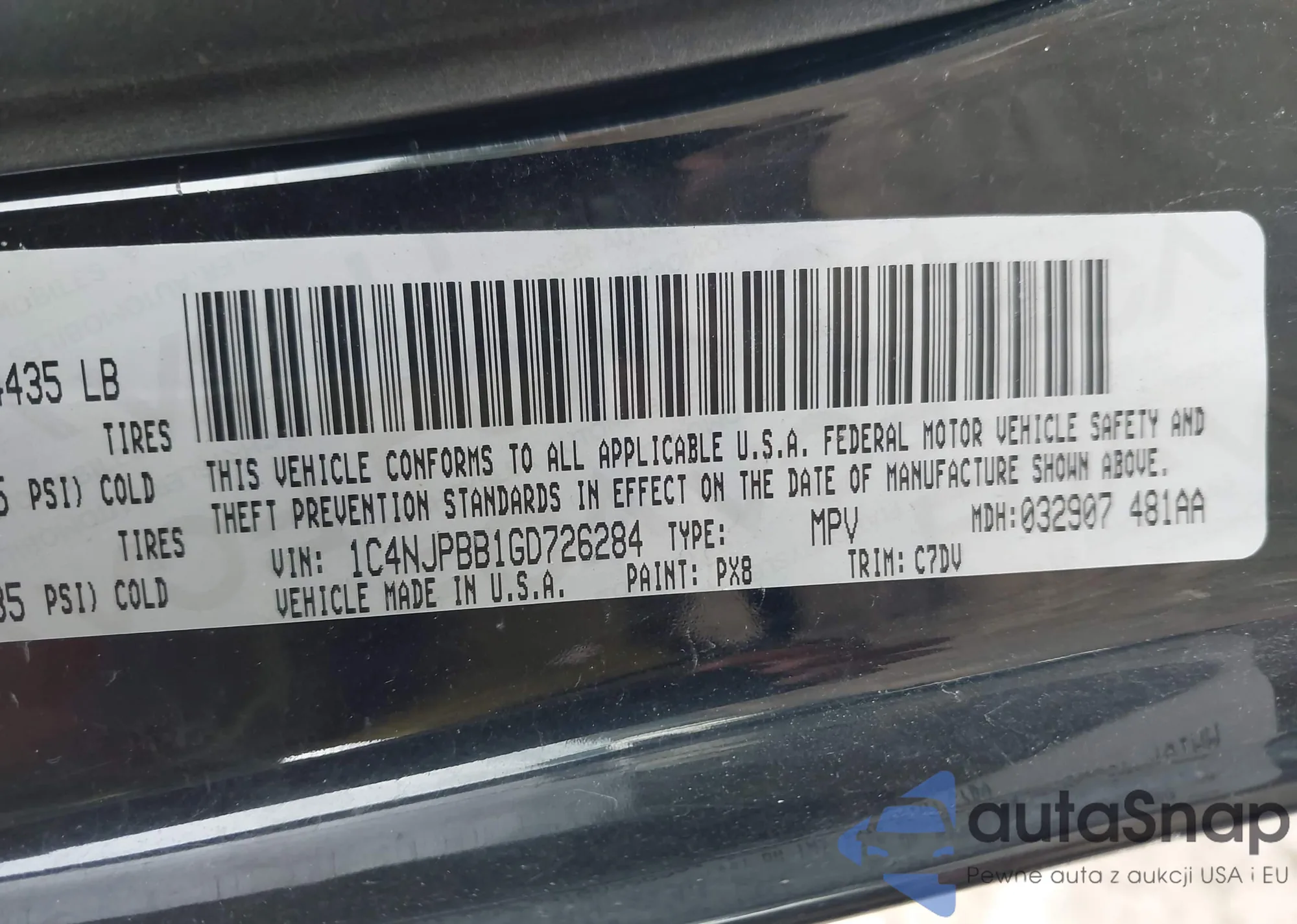 Автомобиль Jeep Liberty (Patriot) 2016 (VIN 1C4NJPBB1GD726284) ранее не участвовал в торгах. Документы чистые, пробег соответствует или ниже среднего по рынку. Продаётся страховой компанией — рекомендуем покупку. Доставка в порт займет около 6–8 недель.