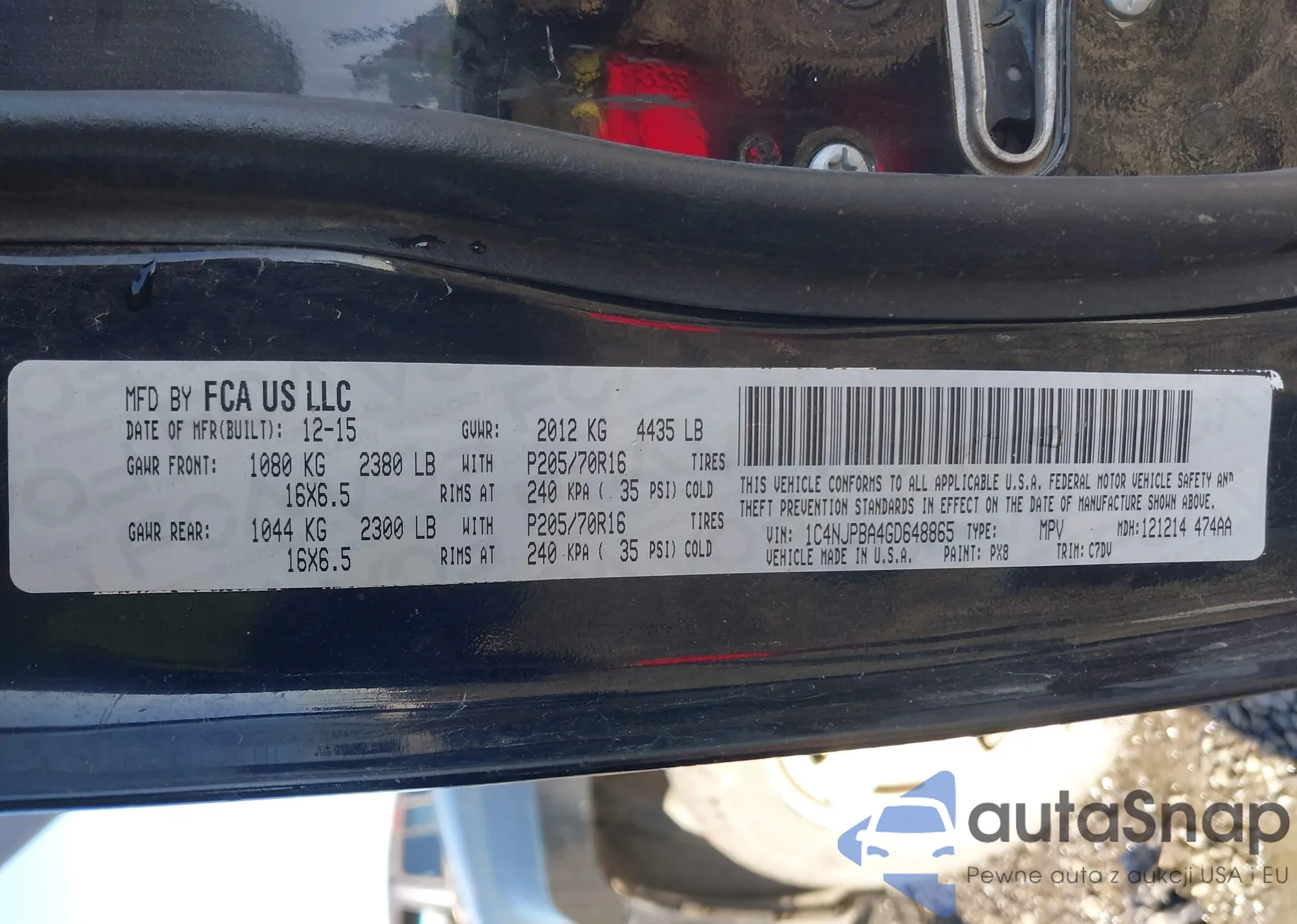 Автомобиль Jeep Liberty (Patriot) 2016 (VIN 1C4NJPBA4GD648865) ранее не участвовал в торгах. Документы чистые, пробег соответствует или ниже среднего по рынку. Продаётся страховой компанией — рекомендуем покупку. Доставка в порт займет около 6–8 недель.