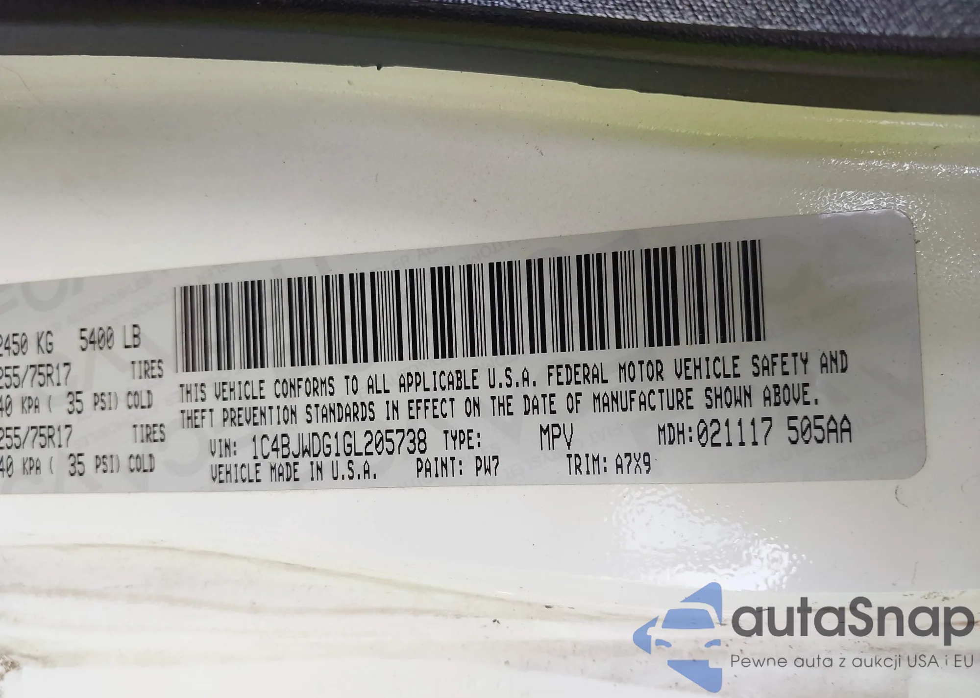 VIN: 1C4BJWDG1GL205738
