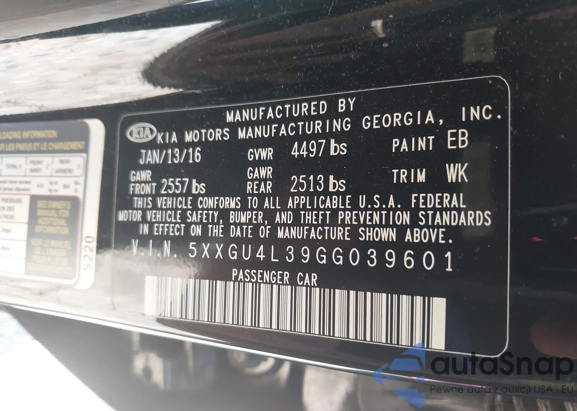 VIN: 5XXGU4L39GG039601