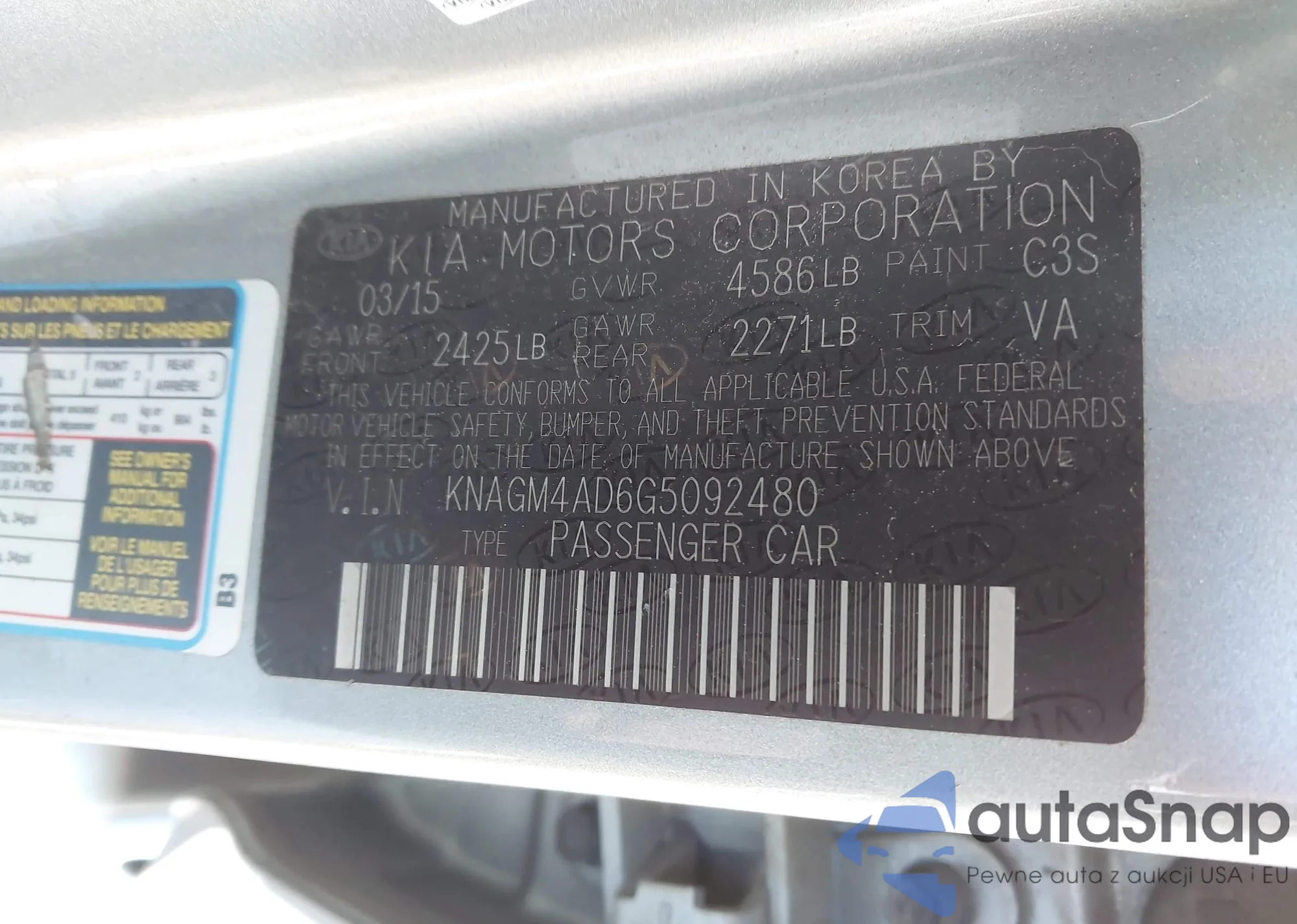 Автомобиль Kia Optima 2016 (VIN KNAGM4AD6G5092480) ранее не участвовал в торгах. Документы чистые, пробег соответствует или ниже среднего по рынку. Продаётся страховой компанией — рекомендуем покупку. Доставка в порт займет около 6–8 недель.