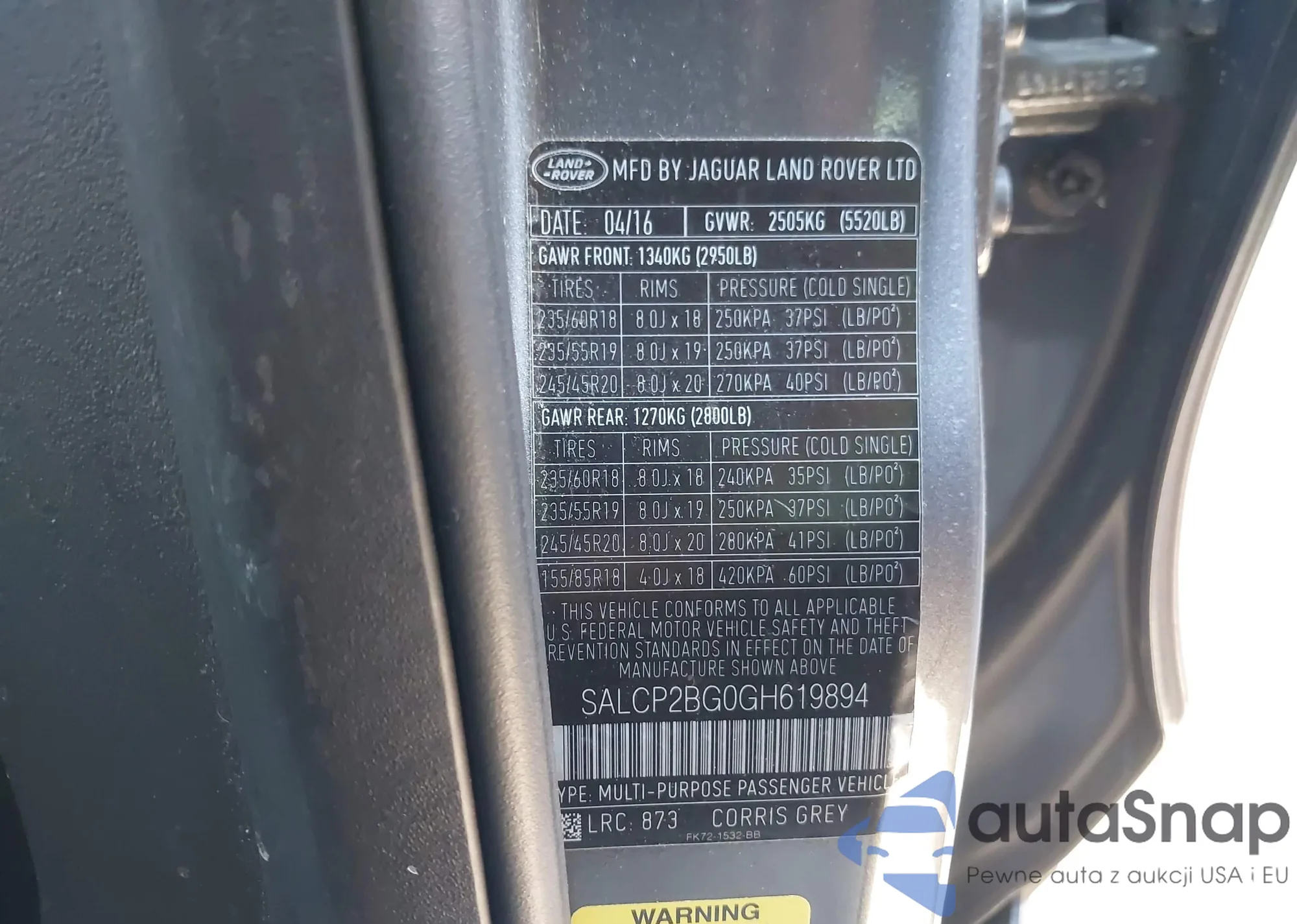 • VIN: SAL2PG0GH619814