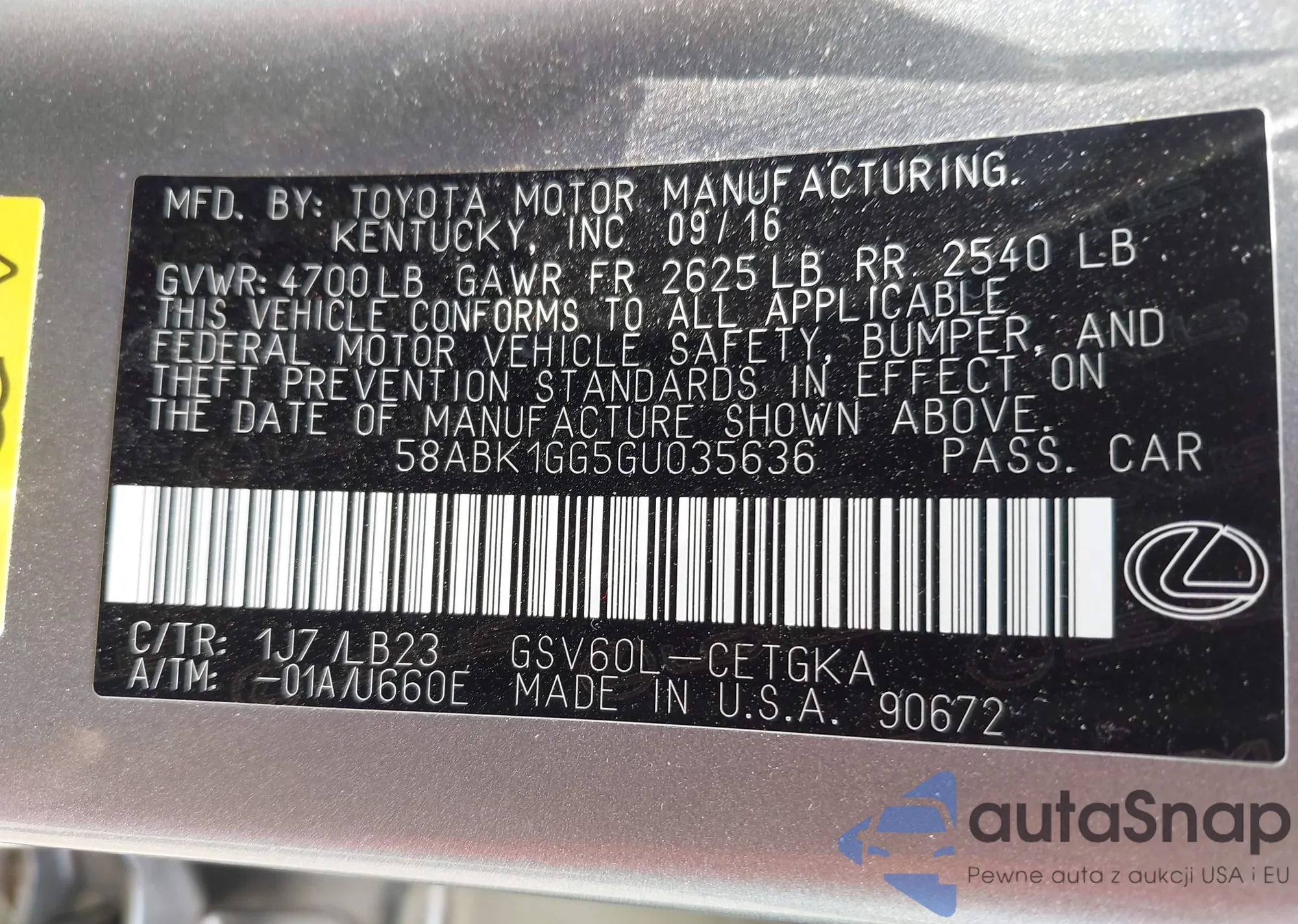 VIN: 58ABK1GG5GU035636