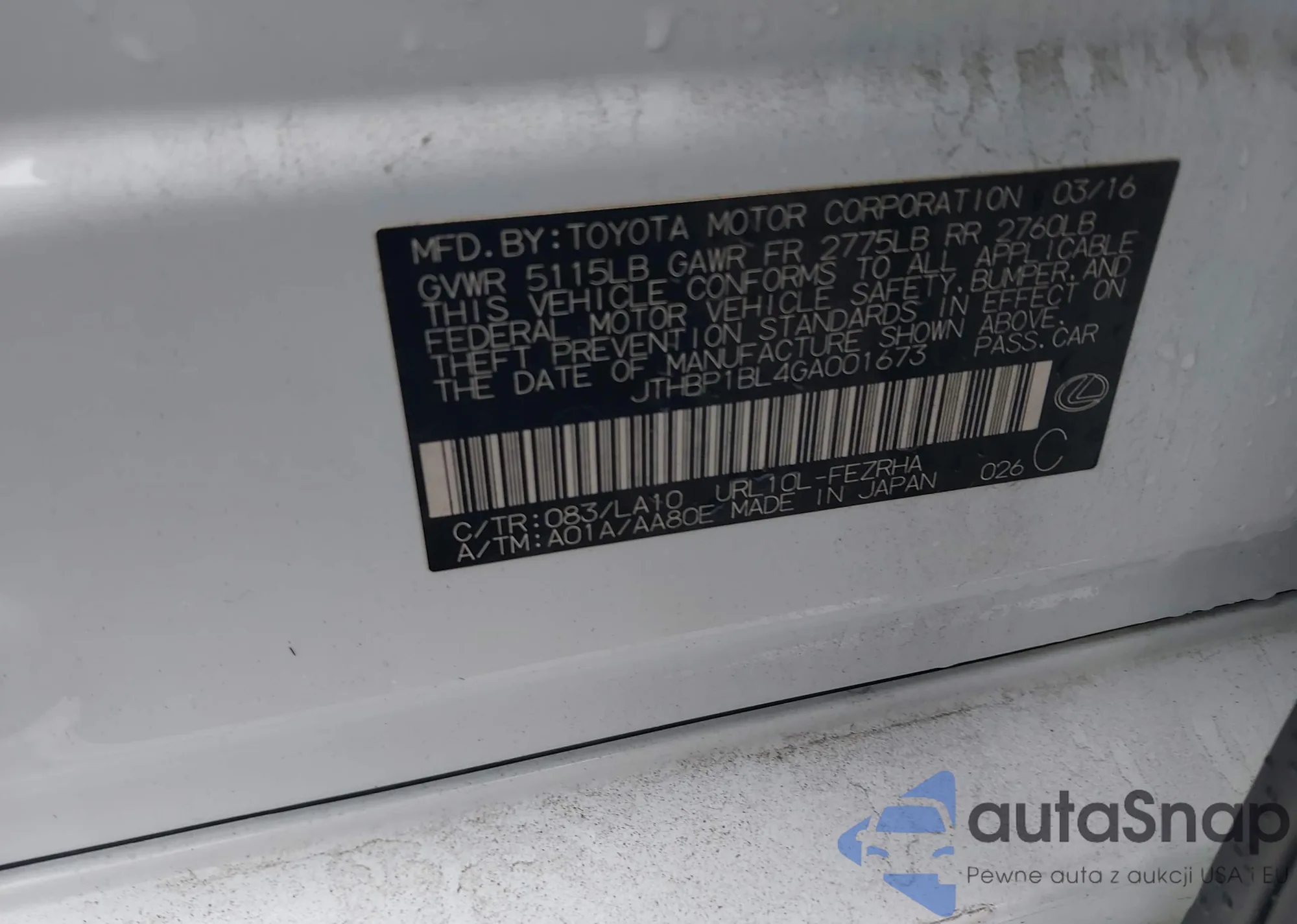 VIN: JTHBP1BL4GA001673