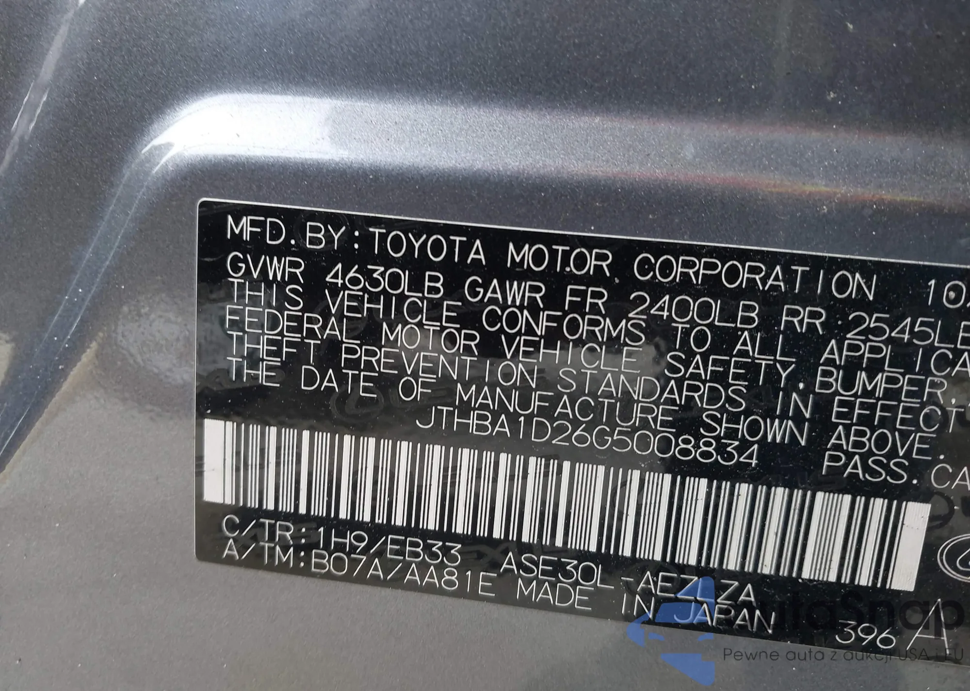 • VIN: JTHBA1D26G5008834
