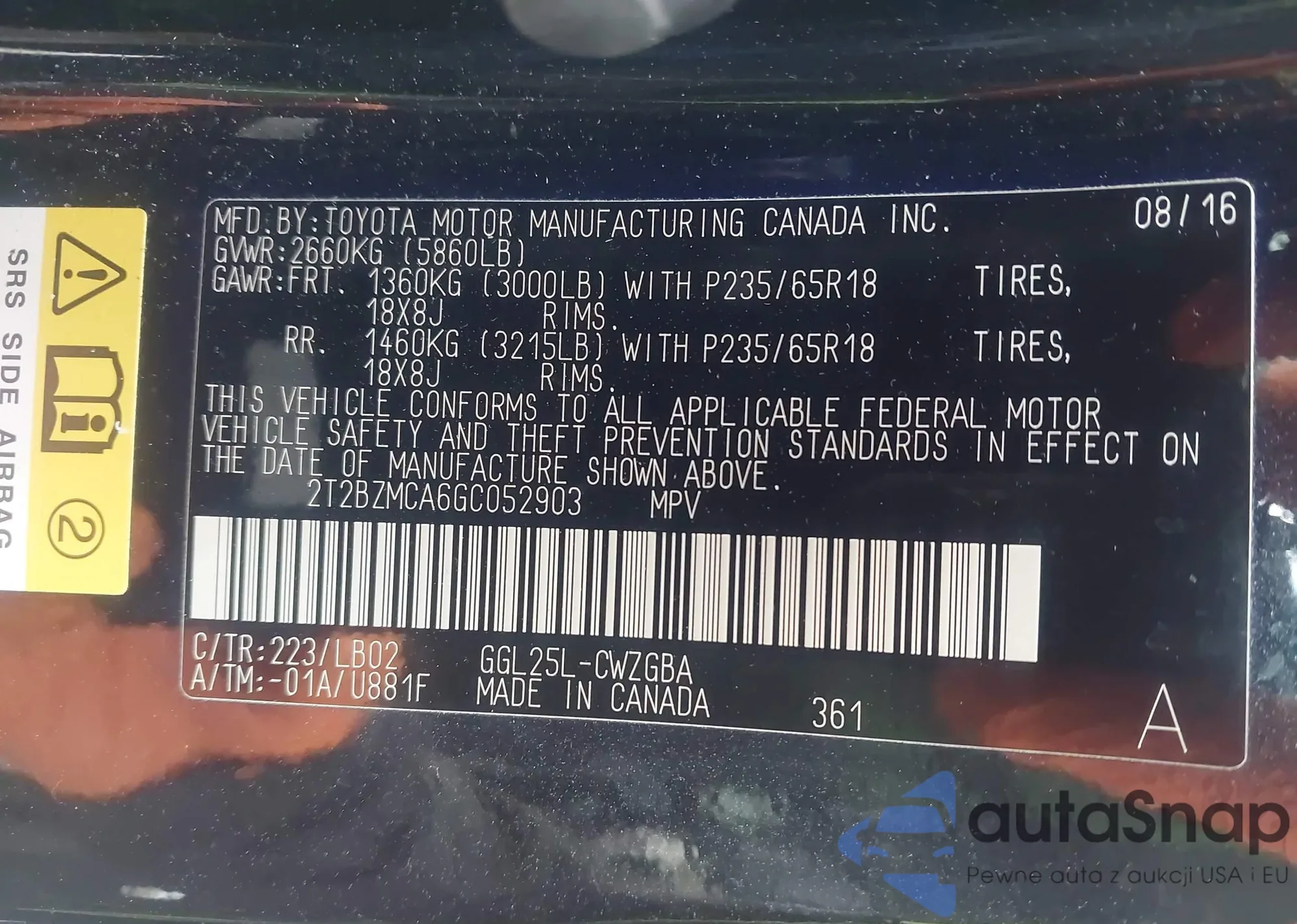 Автомобиль Lexus RX 2016 (VIN 2T2BZMCA6GC052903) ранее не участвовал в торгах. Документы чистые, пробег соответствует или ниже среднего по рынку. Продаётся страховой компанией — рекомендуем покупку. Доставка в порт займет около 6–8 недель.