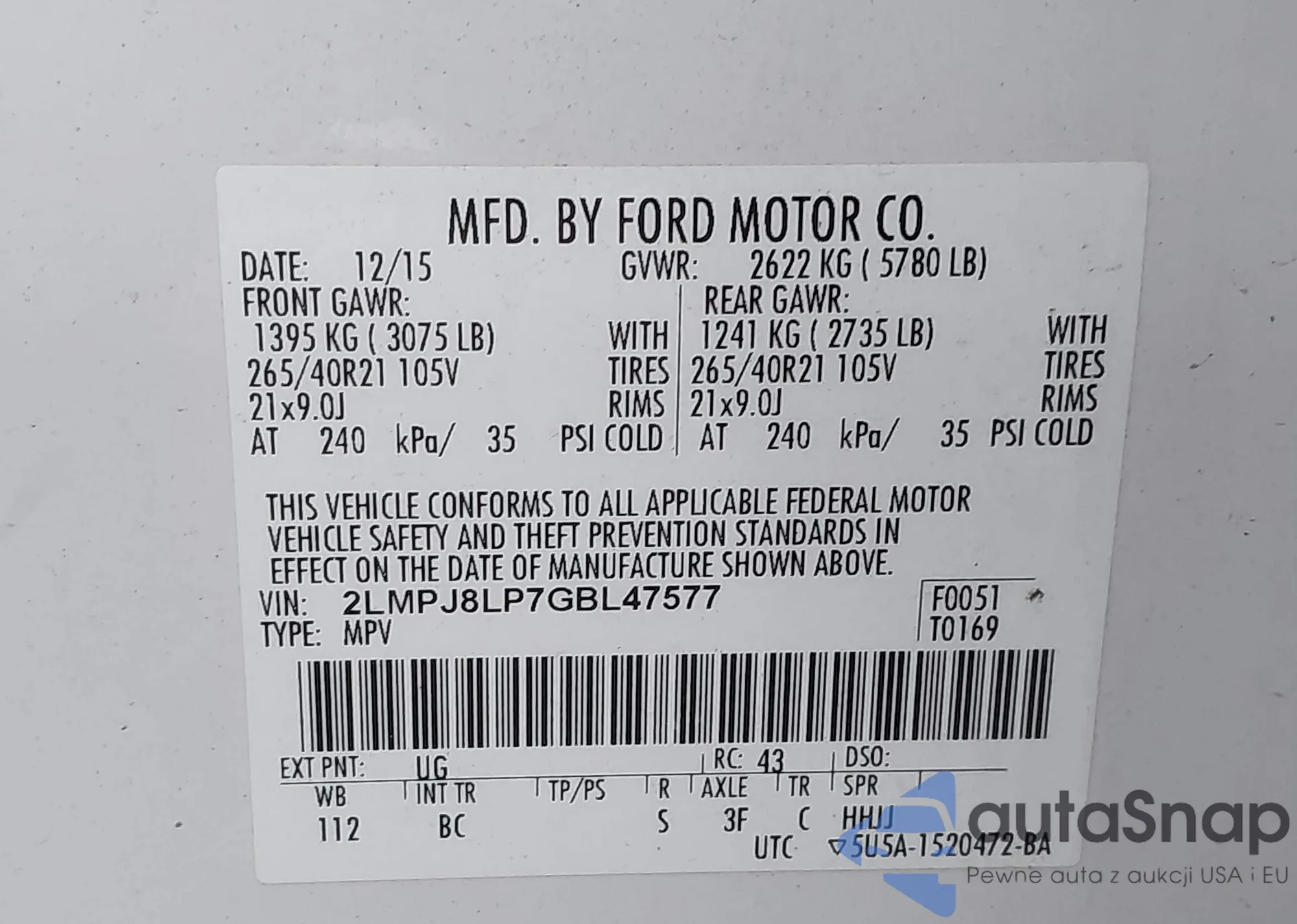 VIN: 2LMPJ8LP7GBL47577