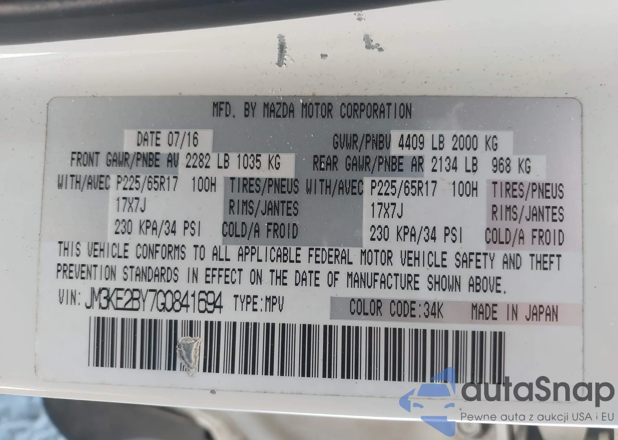 VIN: JM3KE2BY7G0841694