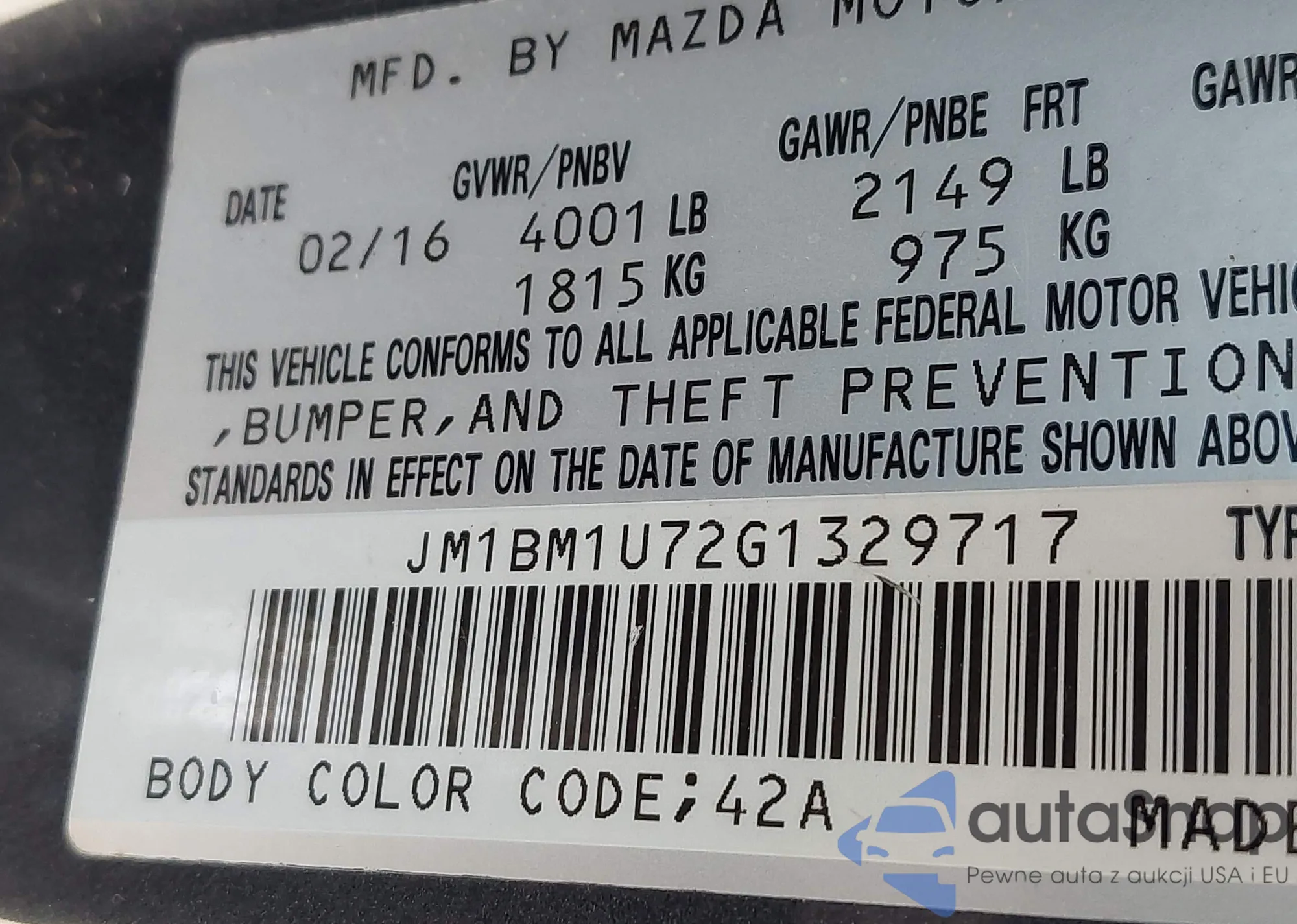VIN: JM1BM1U72G1329717