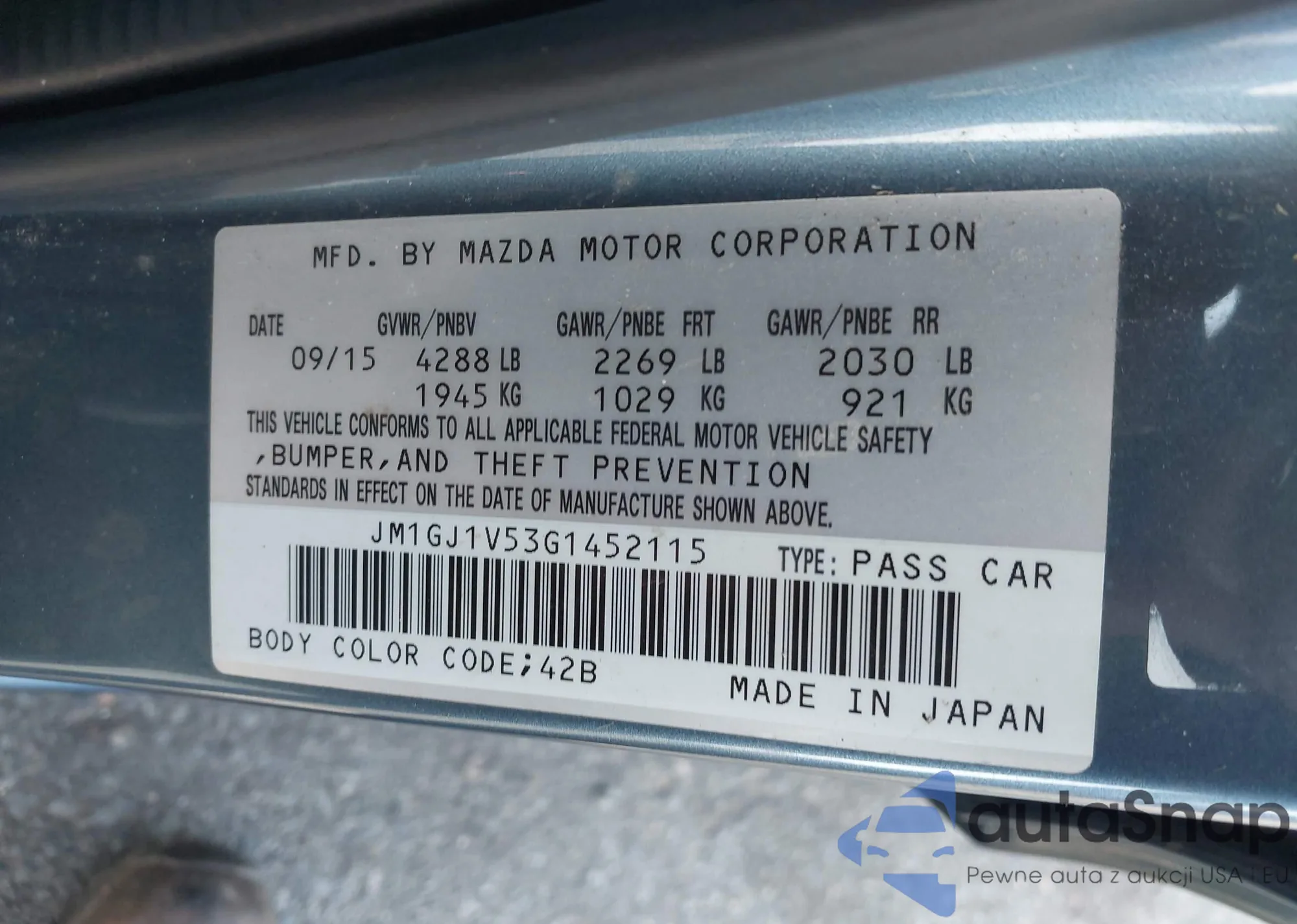 VIN: JM1GJ1V53G1452115