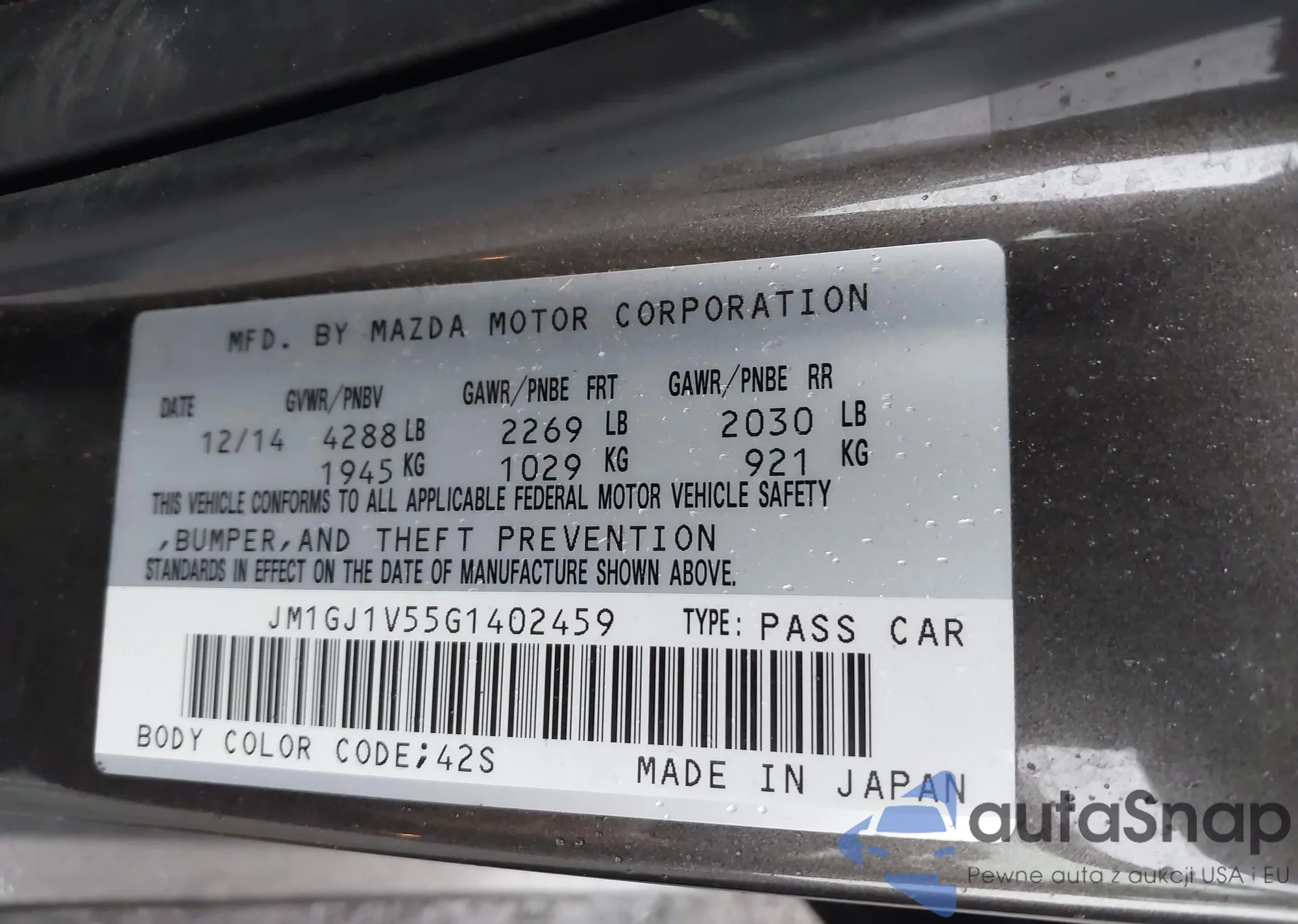 • VIN: JM1GJ1V55G1402459