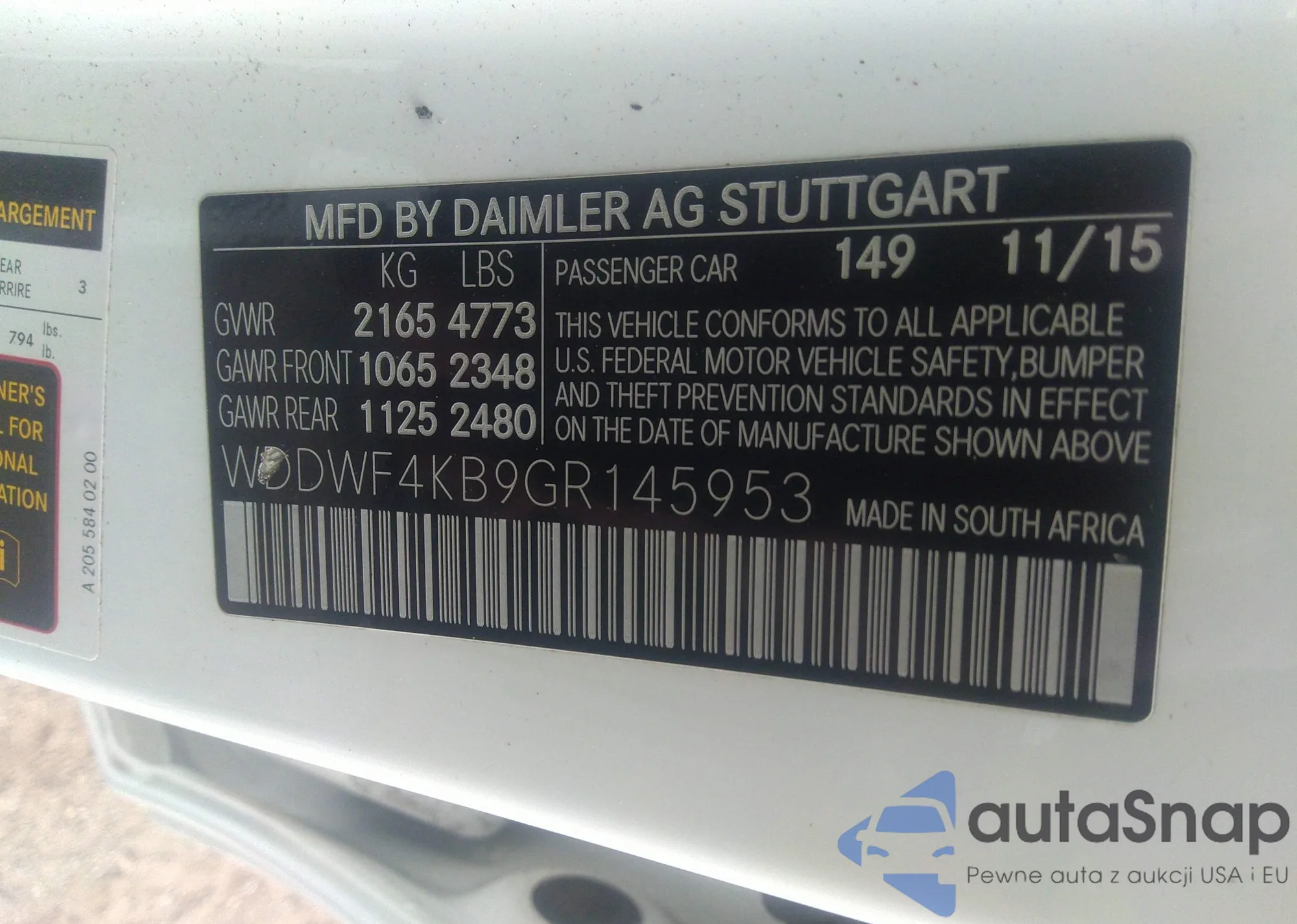 Автомобиль Mercedes-Benz C-klasse 2016 (VIN WDDWF4KB9GR145953) имеет документы, препятствующие регистрации. Могут возникнуть сложности при экспорте и регистрации. Обратитесь к экспертам AutaSnap для поиска альтернатив.