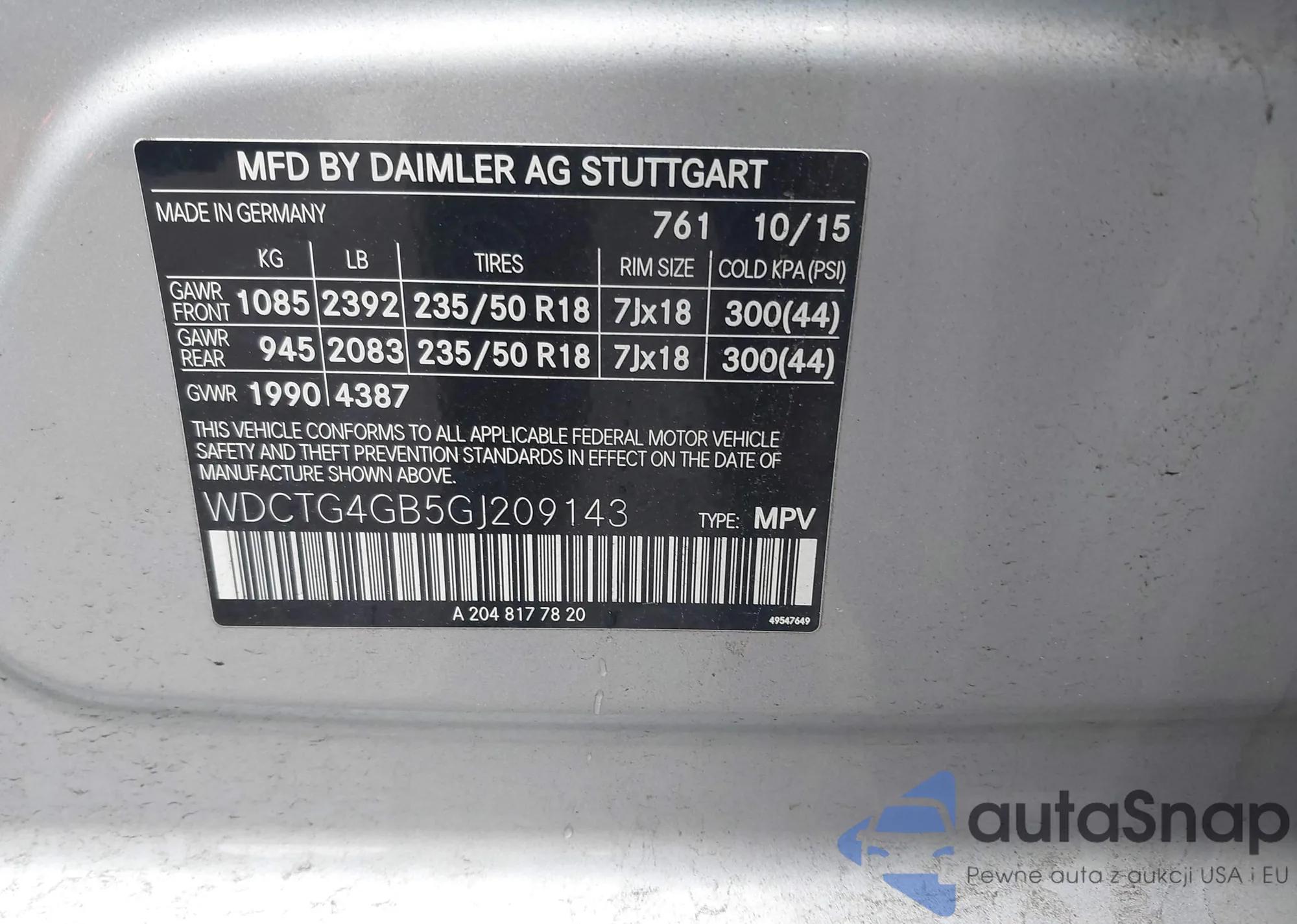 VIN: WDCTG4GB5GJ209143