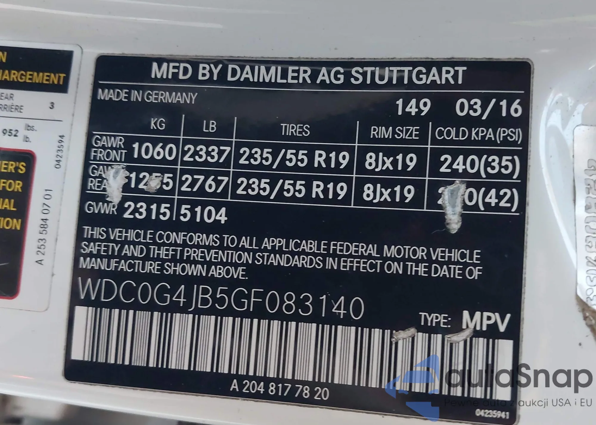 • VIN: WDC0G4JB5GF083140