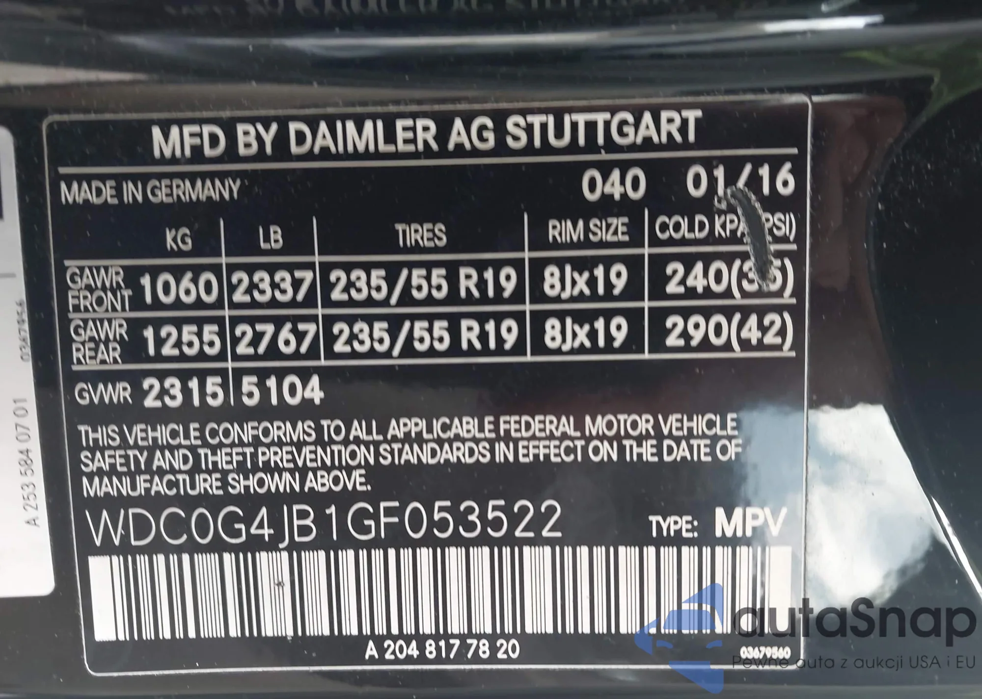 • VIN: WDC0G4JB1GF053522