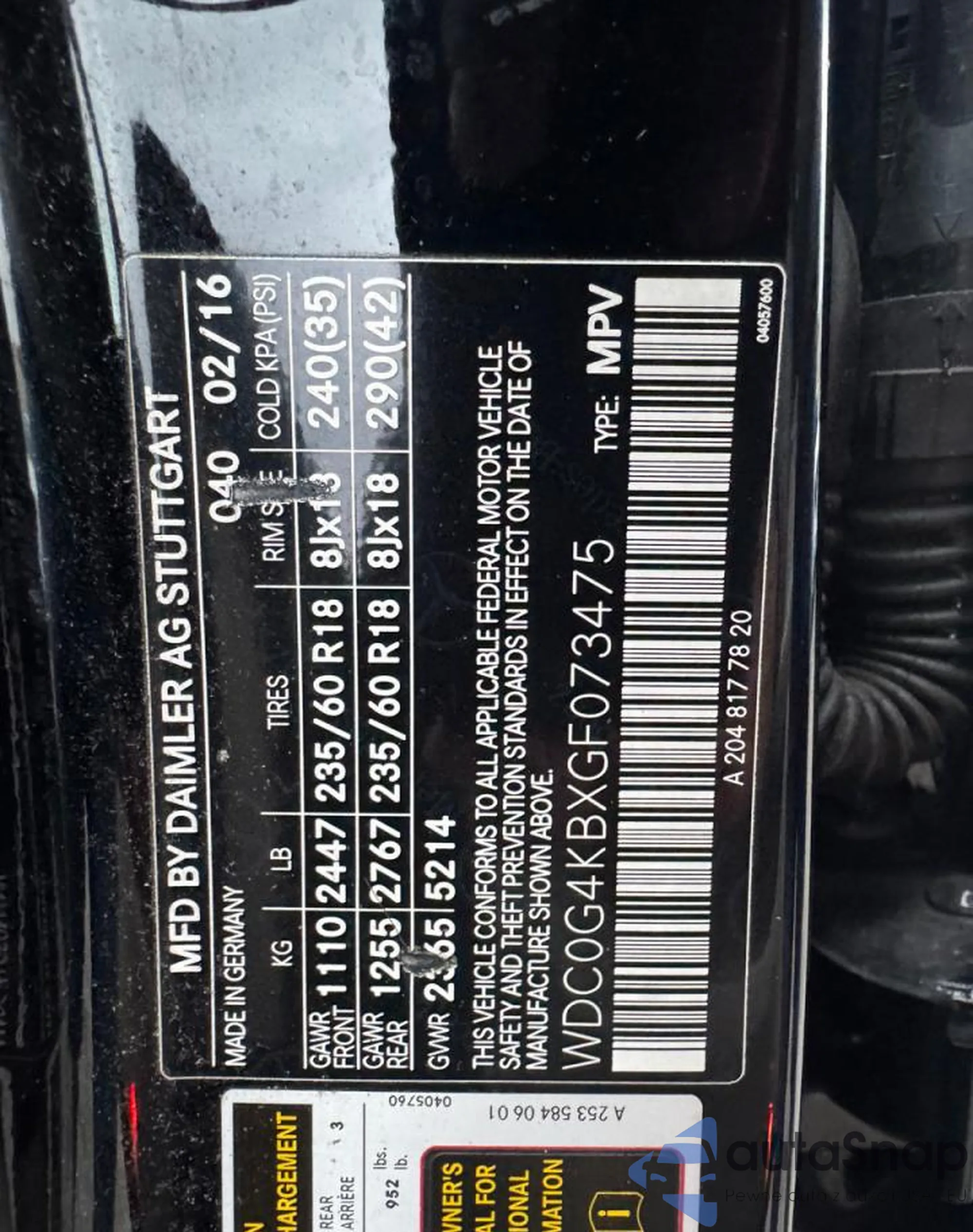 VIN: WDC0G4KBXGF073475