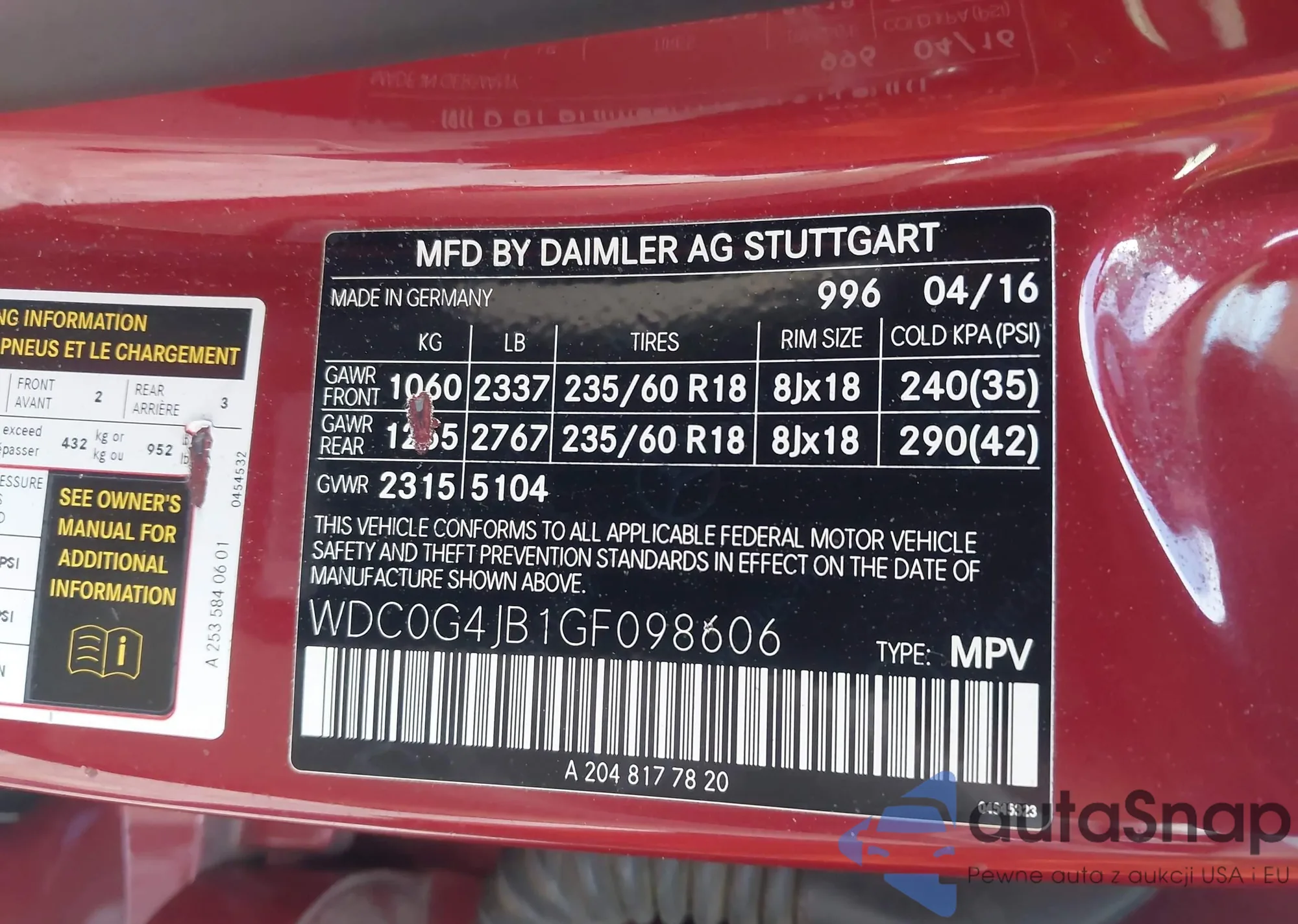 • VIN: WDC0G4JB1GF098606