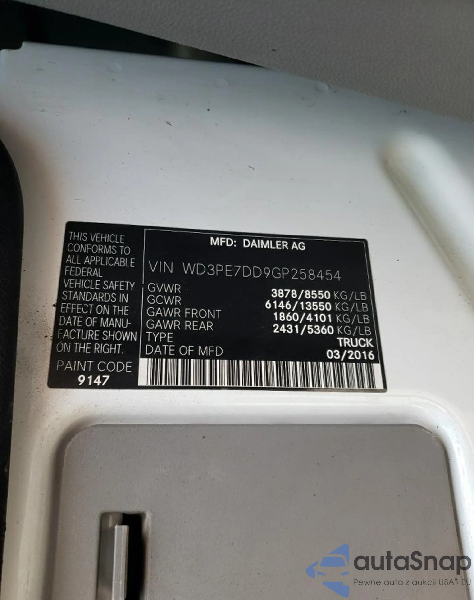• VIN: WD3PE7DD9GP258454